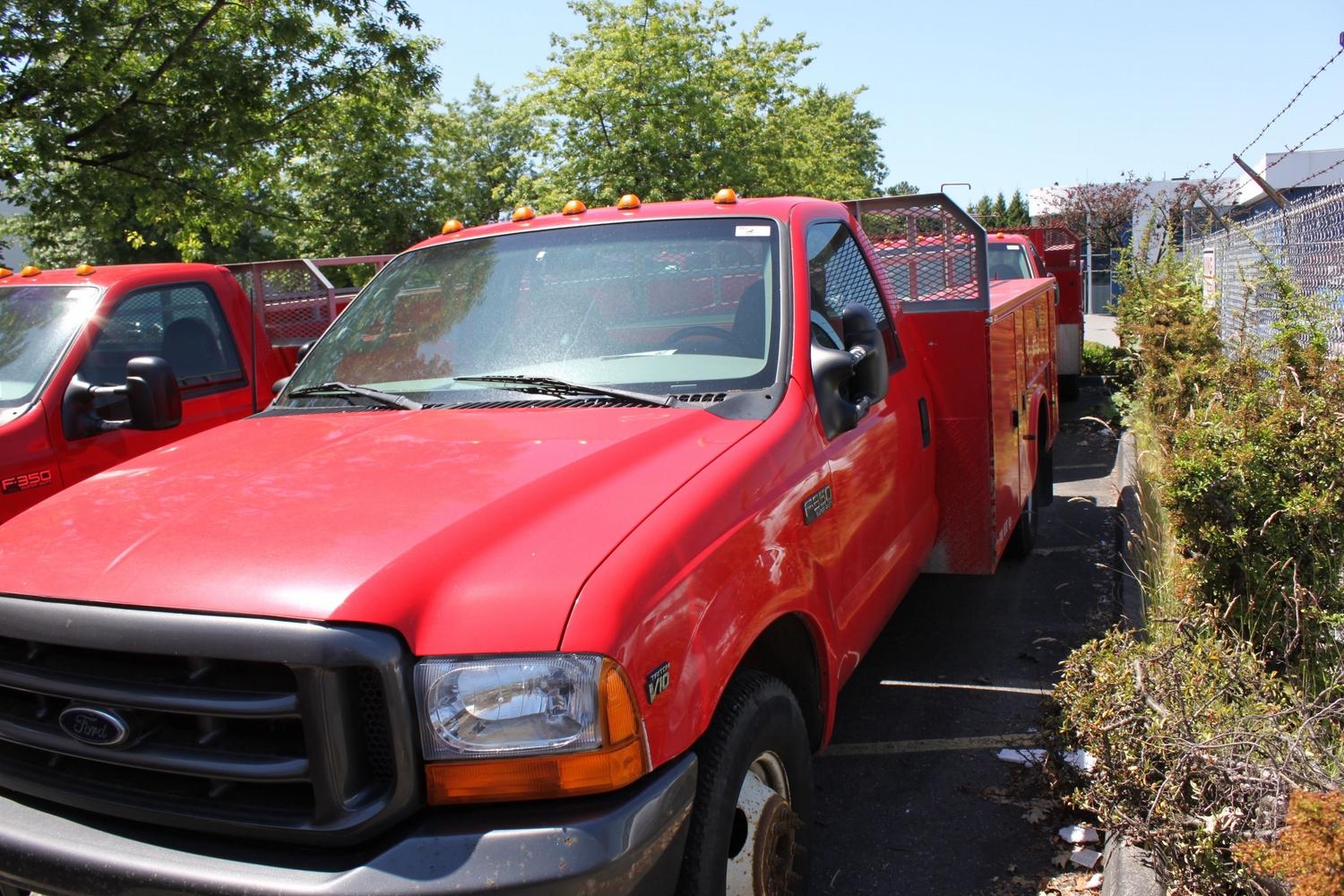 1999 RED FORD F-350 XL SUPERDUTY UTILITY TRUCK 349 - 624KM GAS 6.8L AUTOMATIC TRANS VIN: 1FDWF36S4XEE46518 15% OOP RD AC AIRCARE: REQUIRED