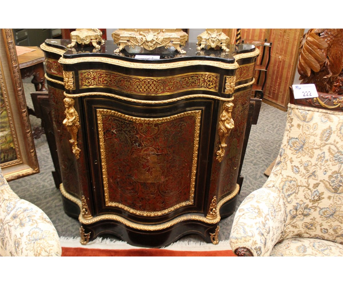 19TH CENTURY FRENCH BOULLE CABINET WITH MARBLE TOP 44" W X 42" H