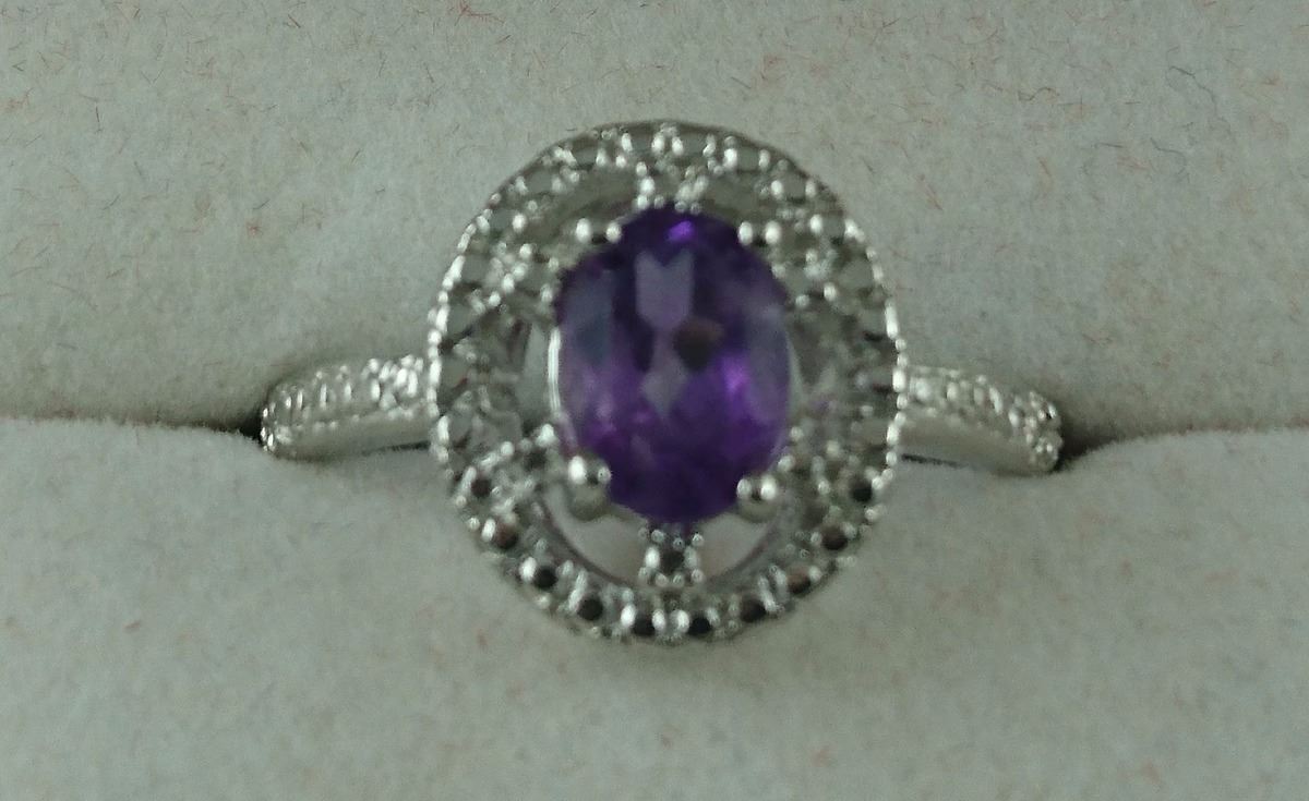 1CT PURPLE AMETHYST + DIAMOND RING. OVAL CUT. VS CLARITY. STERLING SILVER. RETAIL VALUE $300