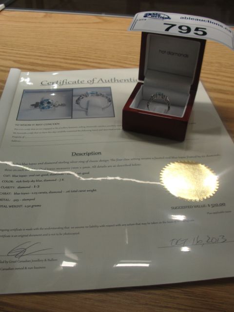 2.03CARAT TOPAZ RING SET WITH .06CARAT DIAMOND. INLCUDES $510 CERTIFICATE