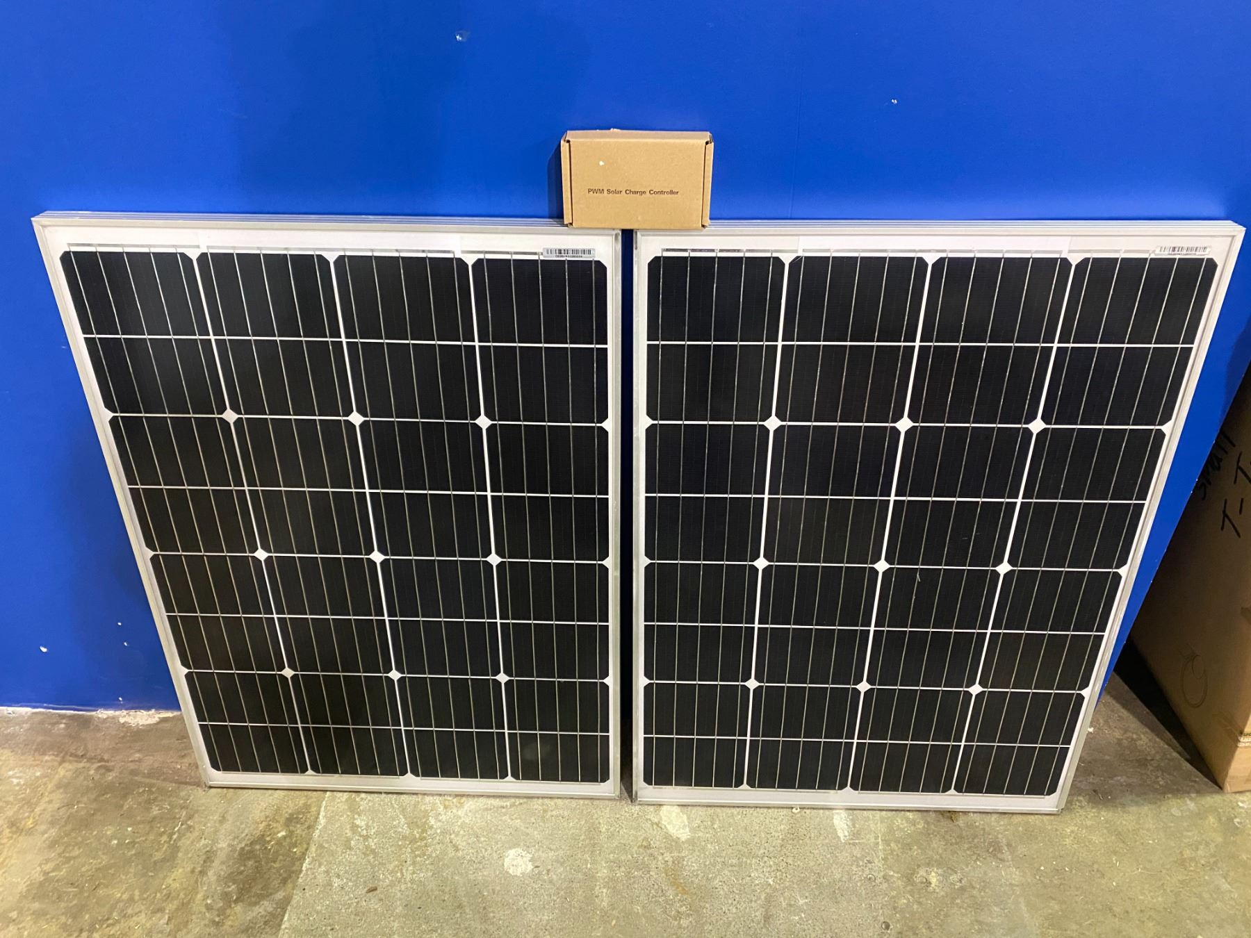 2 100 WATT SOLAR PANELS WITH CHARGE CONTROLLER