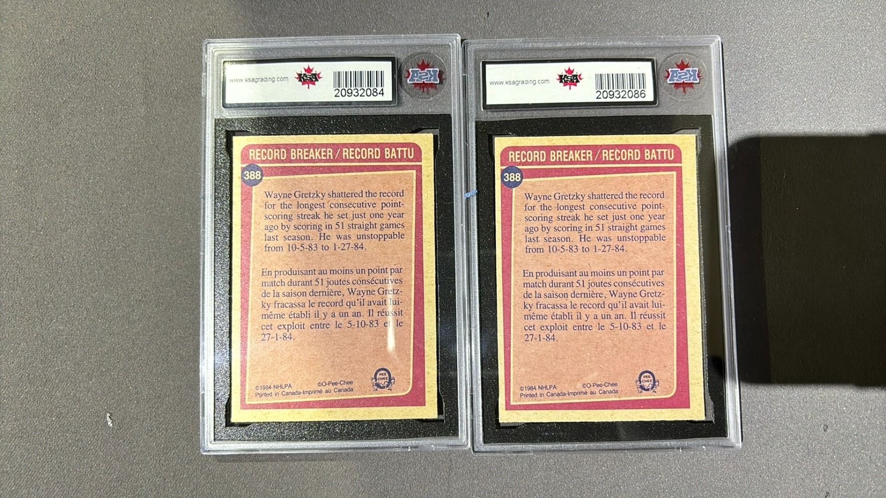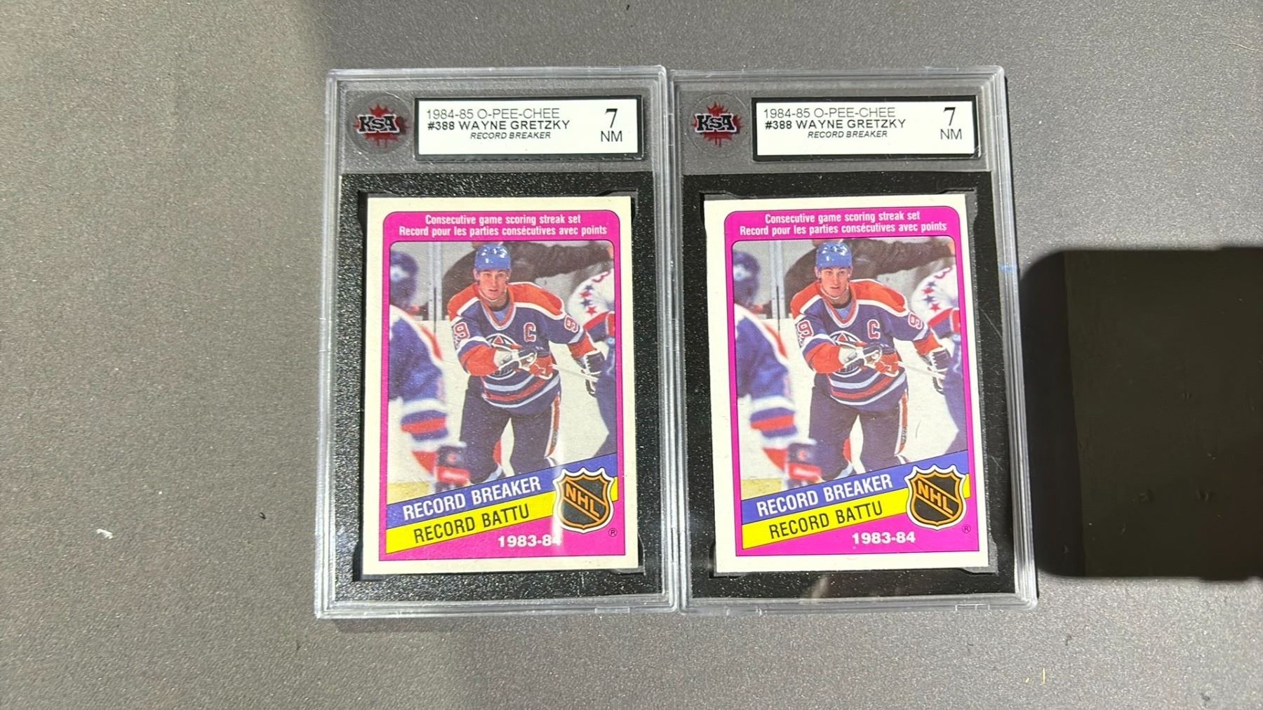 2 1984-1985 O-PEE-CHEE WAYNE GRETZKY RECORD BREAKER #388, KSA GRADED 7NM