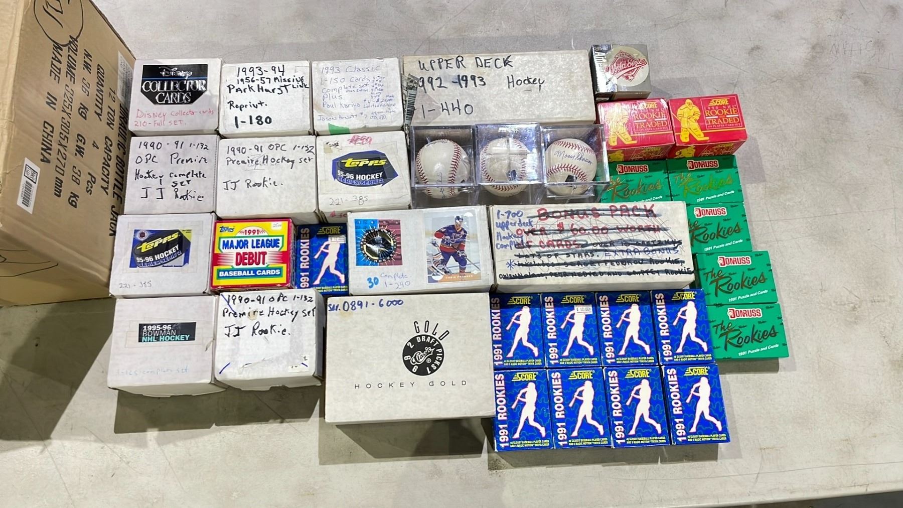 2 1990 SCORE ROOKIE TRADED HOCKEY (FACTORY SEALED) 3 1990-1991 O-PEE-CHEE HOCKEY SETS, 1-132 COMPLETE 1 1992 CLASSIC GOLD HOCKEY DRAFT PICKS, 0891 OF 6000 SETS (FACTORY SEALED) 1 1991-1992 UPPER DECK HOCKEY SET 1-700 (COMPLETE) 2 1995-1996 TOPPS HOCKEY SETS, SERIES 2, 221-385 1 1993-1994 PARKHURST HOCKEY MISSING LINK REPRINT SET 1-180 CARDS (COMPLETE) 1 1991 IMPEL DISNEY COLLECTOR CARD SET 1-210 (COMPLETE) 1 1993 CLASSIC HOCKEY SET, 1-150 LTD. TO 25,000 SETS 1 OFFICIAL AMERICAN LEAGUE BASEBALL 1 OFFICIAL AMERICAN LEAGUE BASEBALL AUTO EHPIDIO GUZMAN 1 OFFICIAL AMERICAN LEAGUE BASEBALL AUTO, BILL "MOOSE" SKOWRON 1 OFFICIAL AMERICAN LEAGUE BASEBALL AUTO, REGGIE ABERCROMBIE 9 1991 SCORE BASEBALL ROOKIE 40 CARD SETS (FACTORY SEALED) 5 1991 DONRUSS BASEBALL, THE ROOKIES, 56 CARD SETS (FACTORY SEALED) 1 1996-1997 LEET HOCKEY SET, 1-240 CARDS (COMPLETE) 1 1995-1996 BOWMAN HOCKEY SET 1-165 CARDS (COMPLETE) 1 1991 TOPPS MAJOR LEAGUE DEBUT BASEBALL SET - 192 CARDS (COMPLETE) 1 1992-1993 UPPER DECK HOCKEY, 1-440 COMPLETE