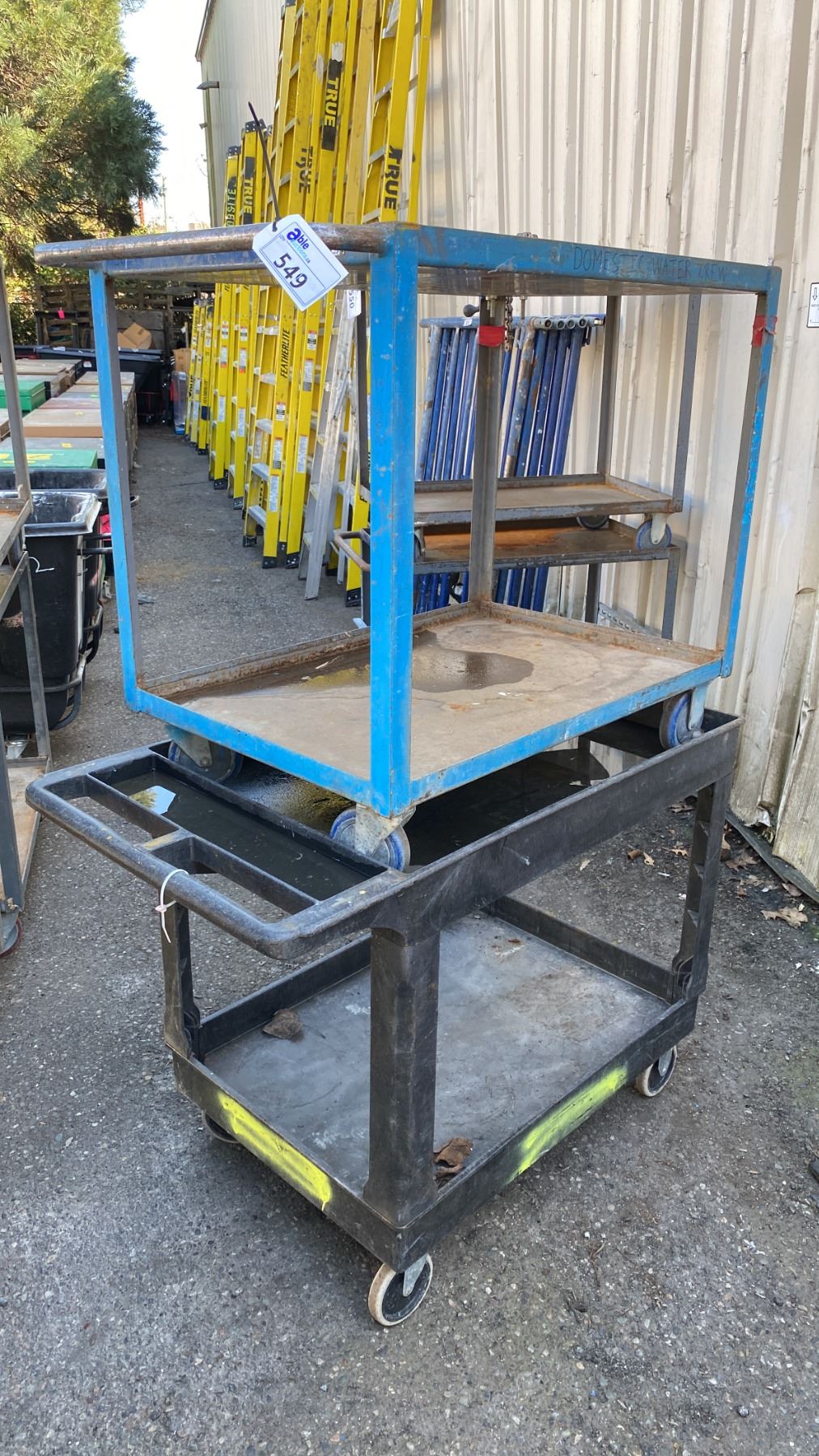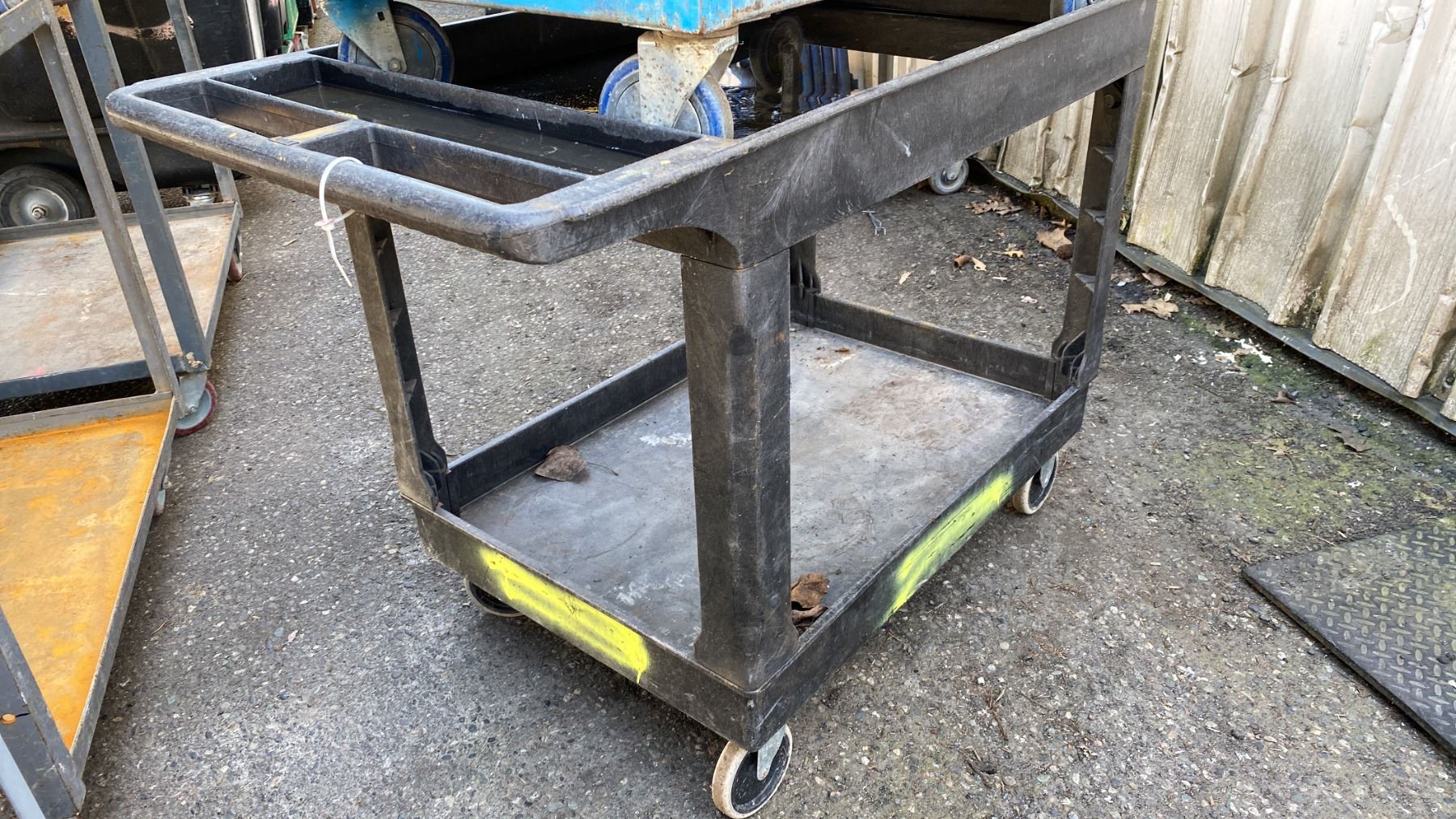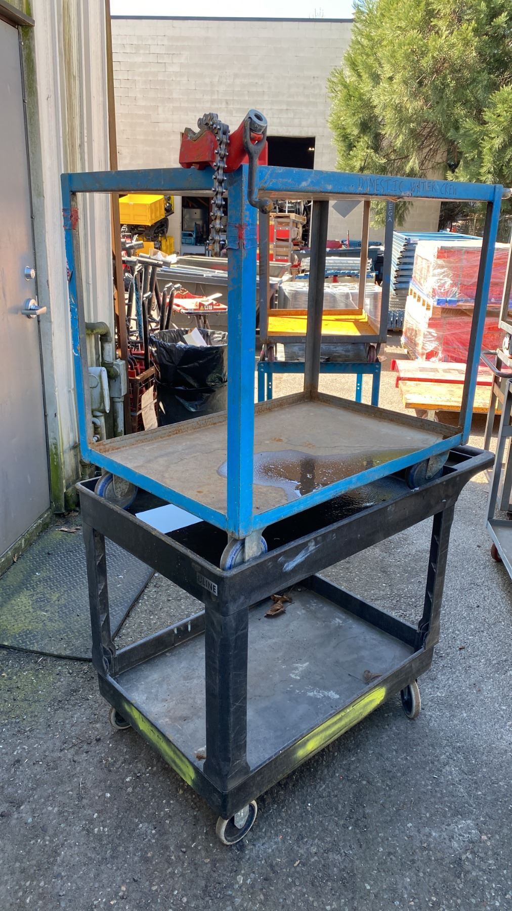 2- 2 TIER UTILITY CARTS WITH 1 BENCH CHAIN VICE