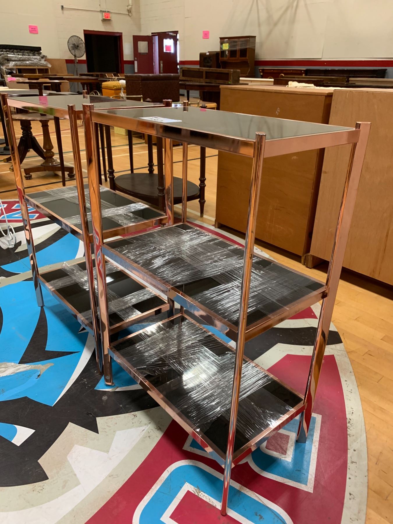 2 3 TIER MODERN METAL & GLASS SHELVING UNITS APPROX 36"X23"X13"