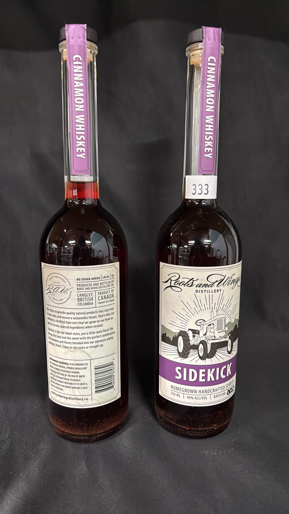 2 - 750ML BOTTLES OF ROOTS AND WINGS DISTILLERY SIDEKICK CINNAMON WHISKEY