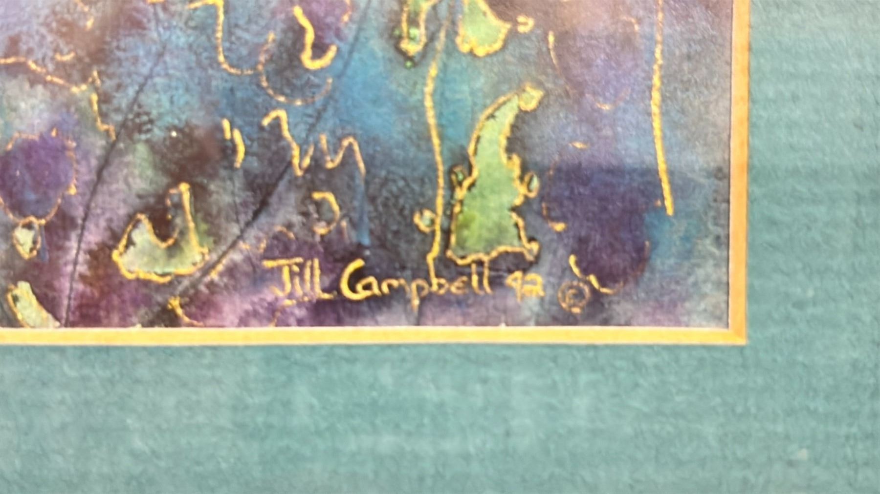 2 8"X10' FRAMED PRINTS. ARTIST JILL CAMPBELL, SALTSPRING ISLAND. DETAILS ON BACK