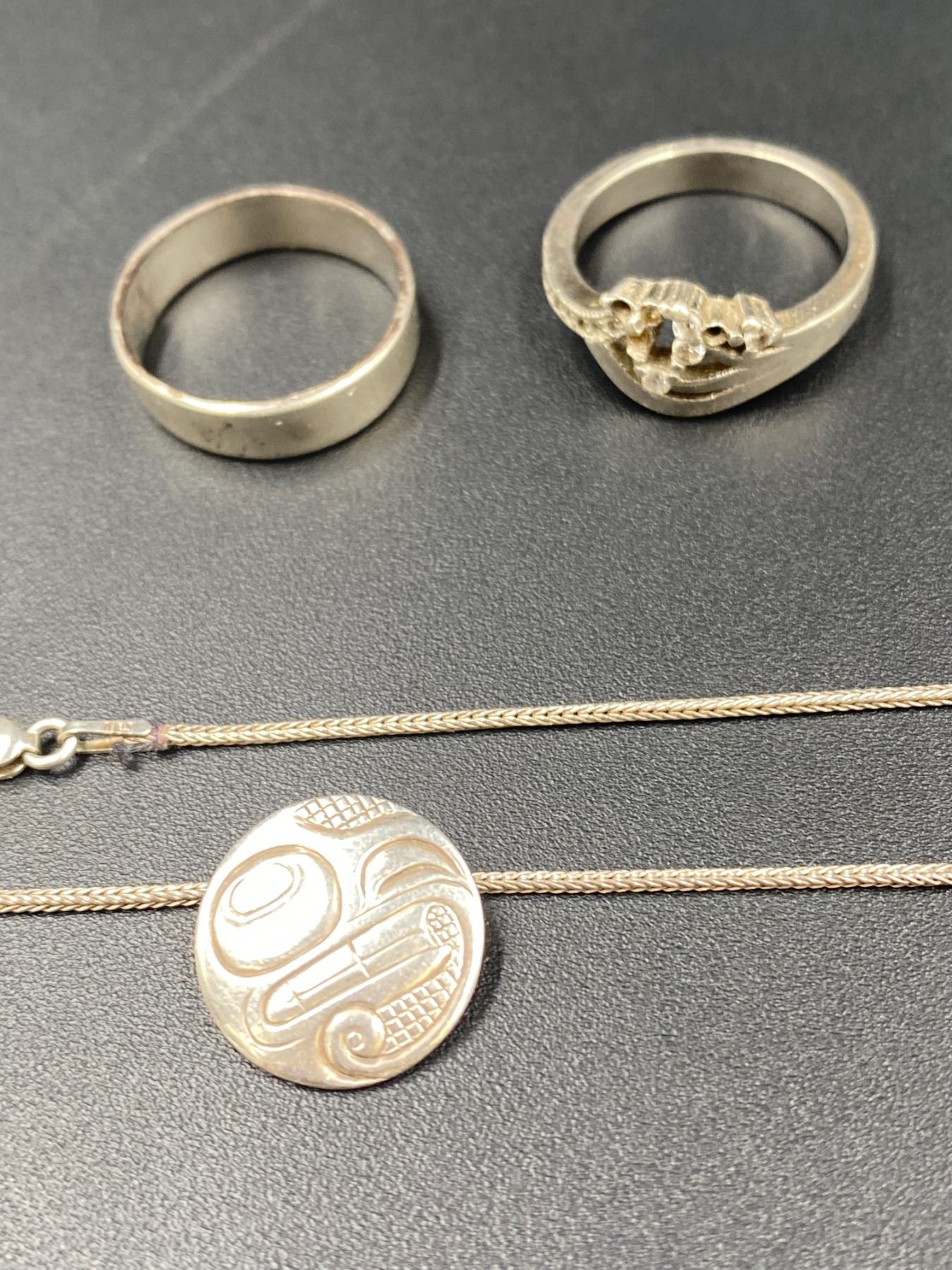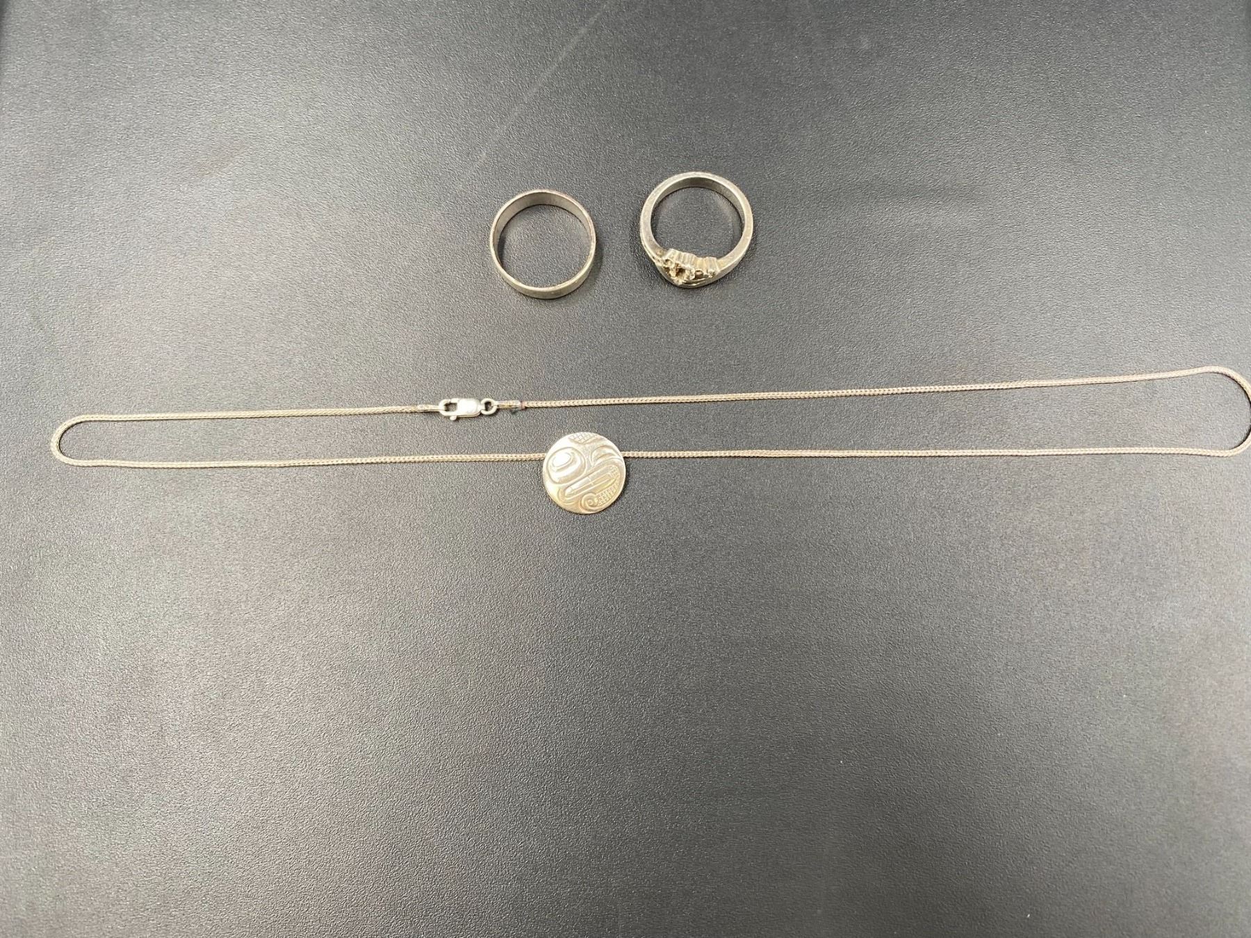 2 .925 SILVER RINGS AND NATIVE .925 SILVER NECKLACE