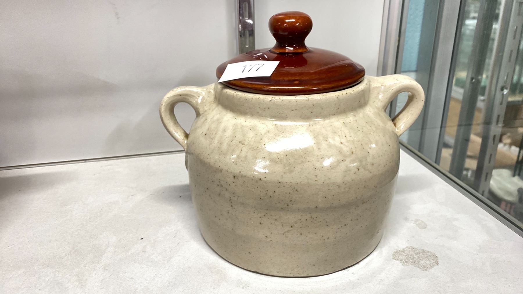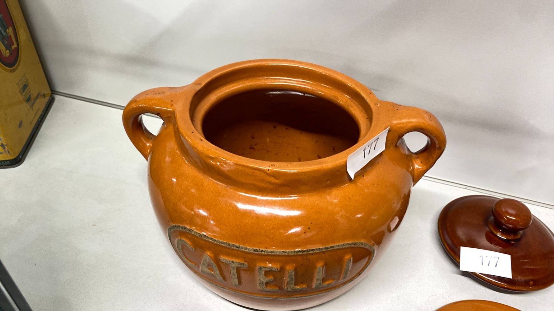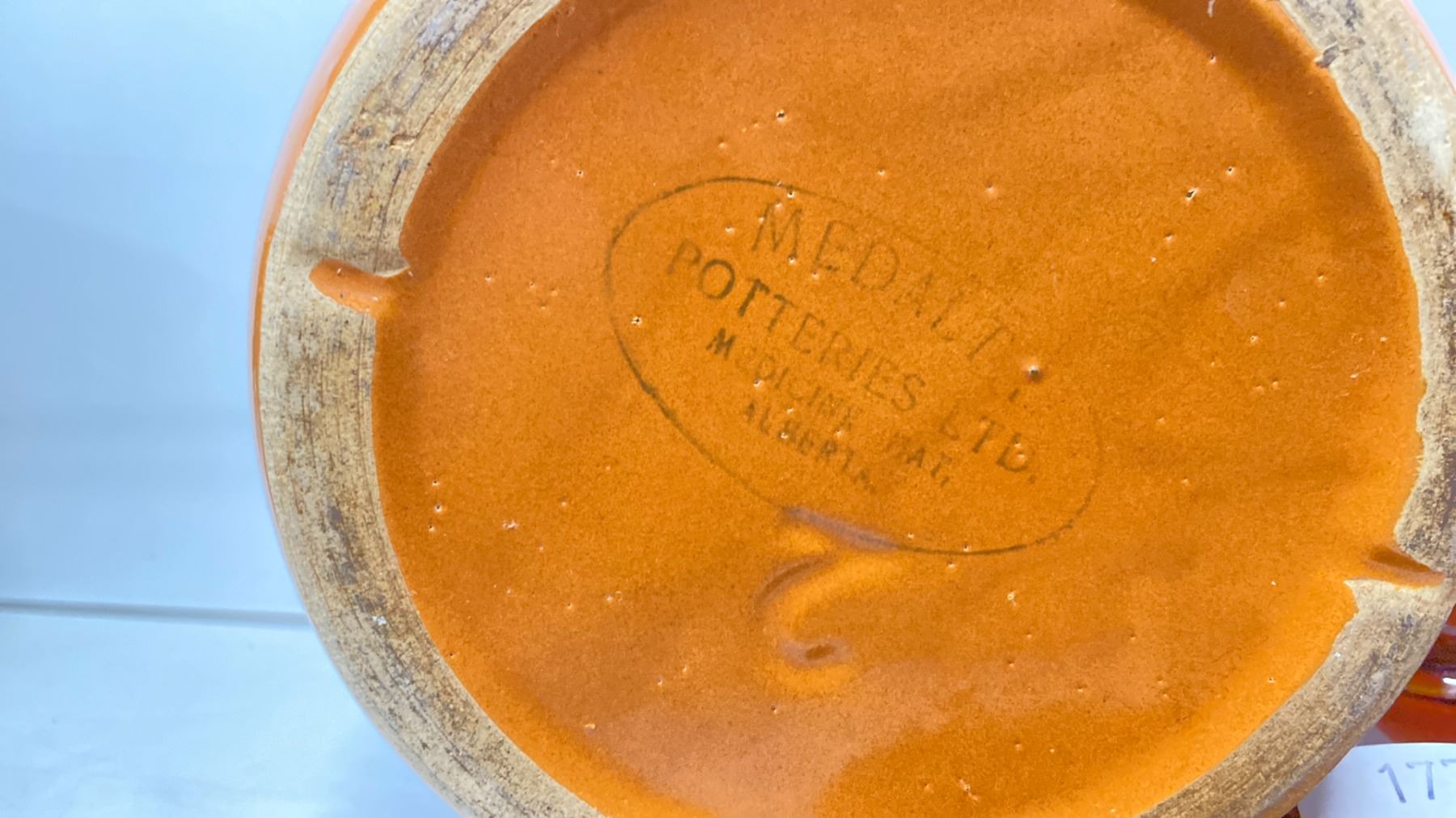 2 ANTIQUE MEDALTA STONEWARE BEAN POTS