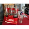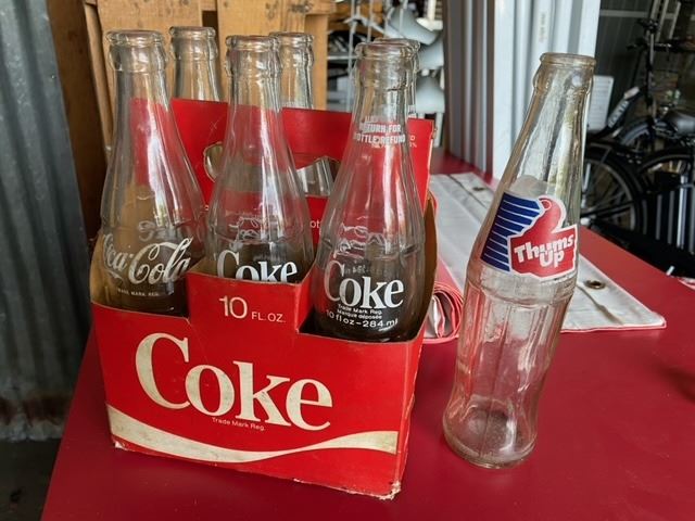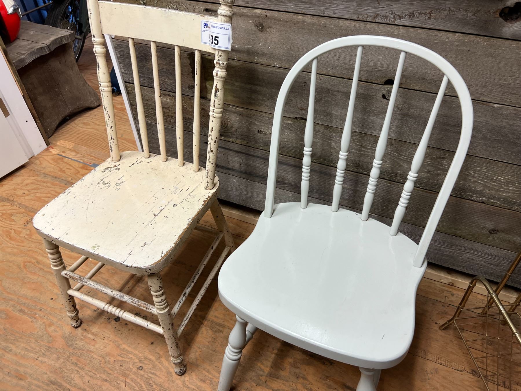 2 ANTIQUE WOODEN CHAIRS & ANTIQUE COKE BOTTLES