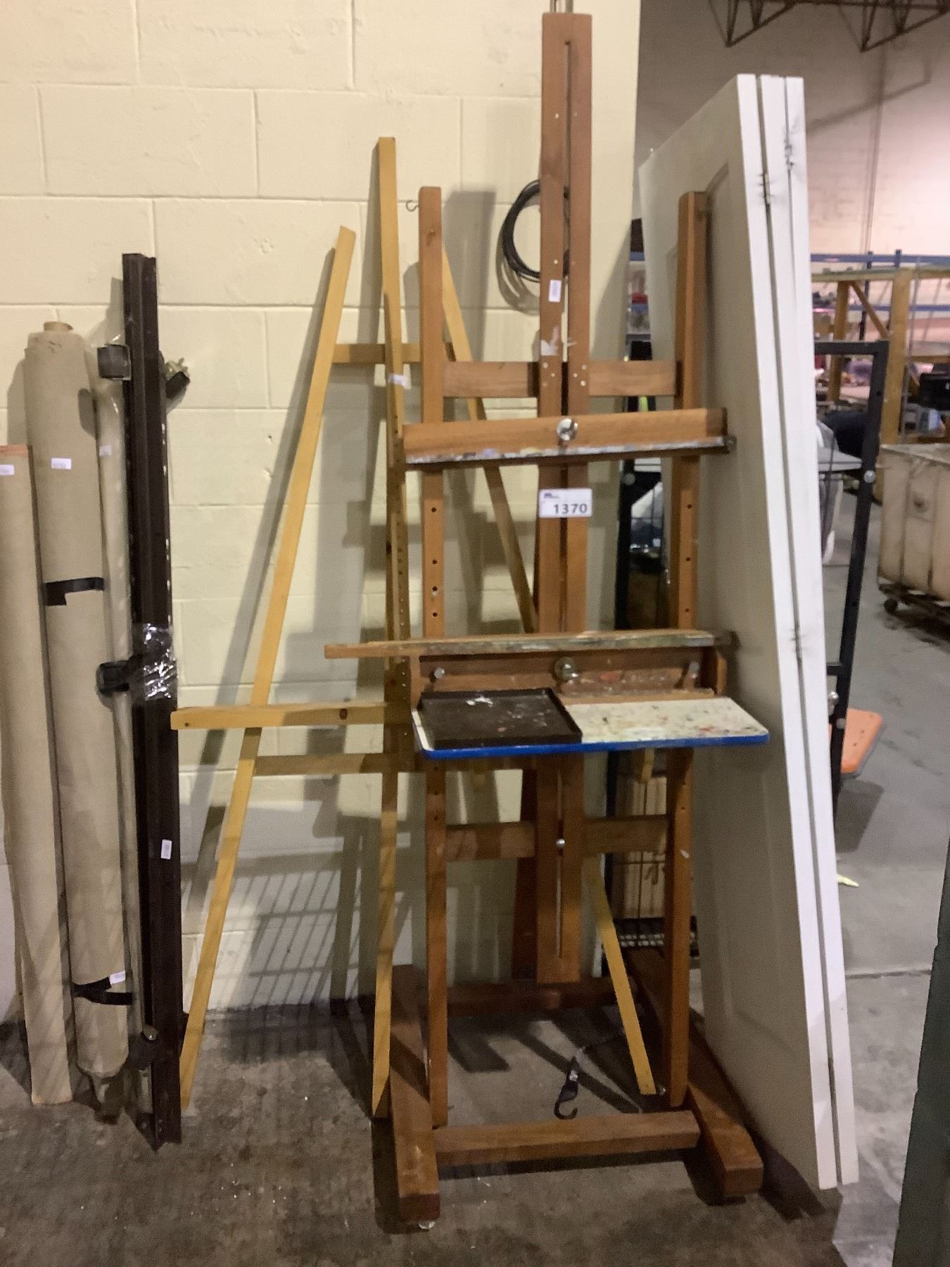 2 ART EASELS, SIDE METAL BED FRAME, 2 CLOSET DOORS, & MORE