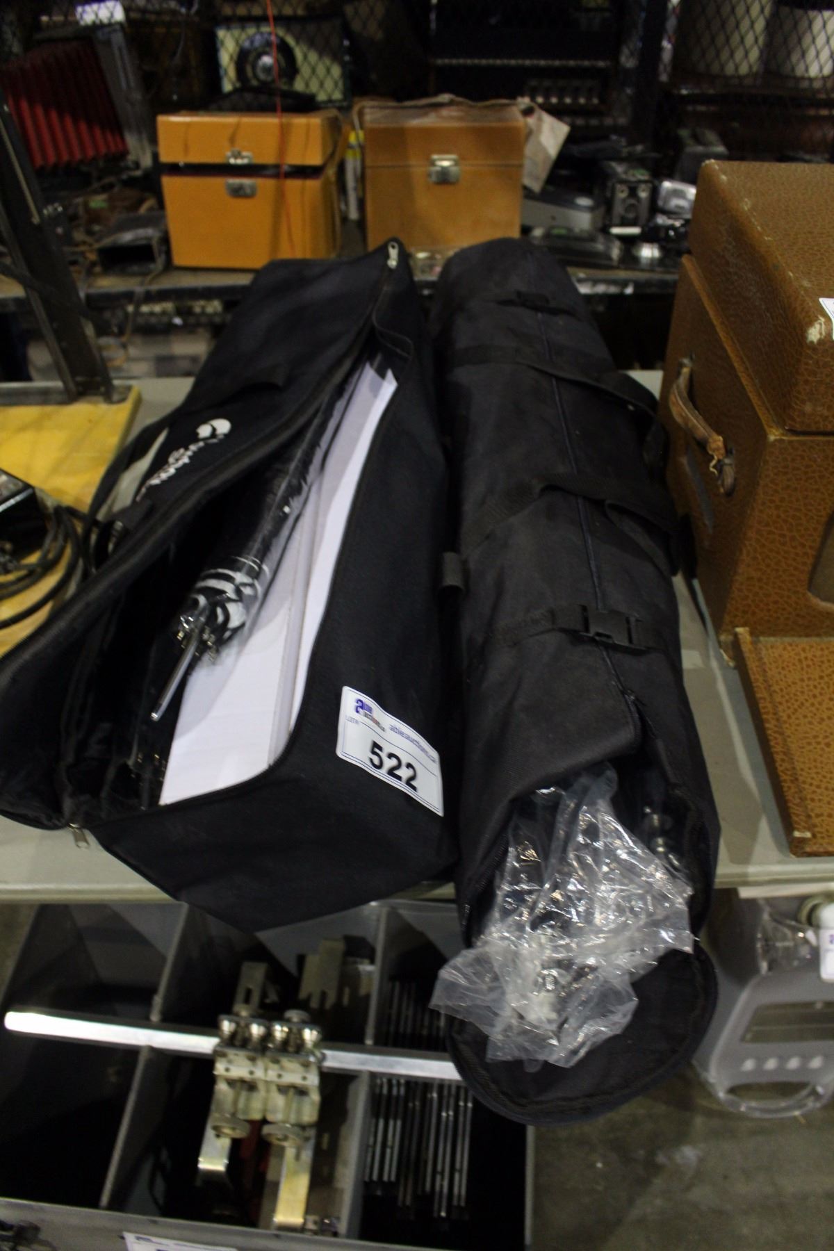 2 BAGS OF CAMERA EQUIPMENT INCLUDING LIGHT UMBRELLAS