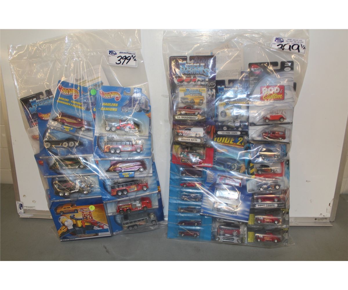 2 BAGS OF HOT WHEELS- LONG HAULERS, MUSCLE MACHINES, ETC.
