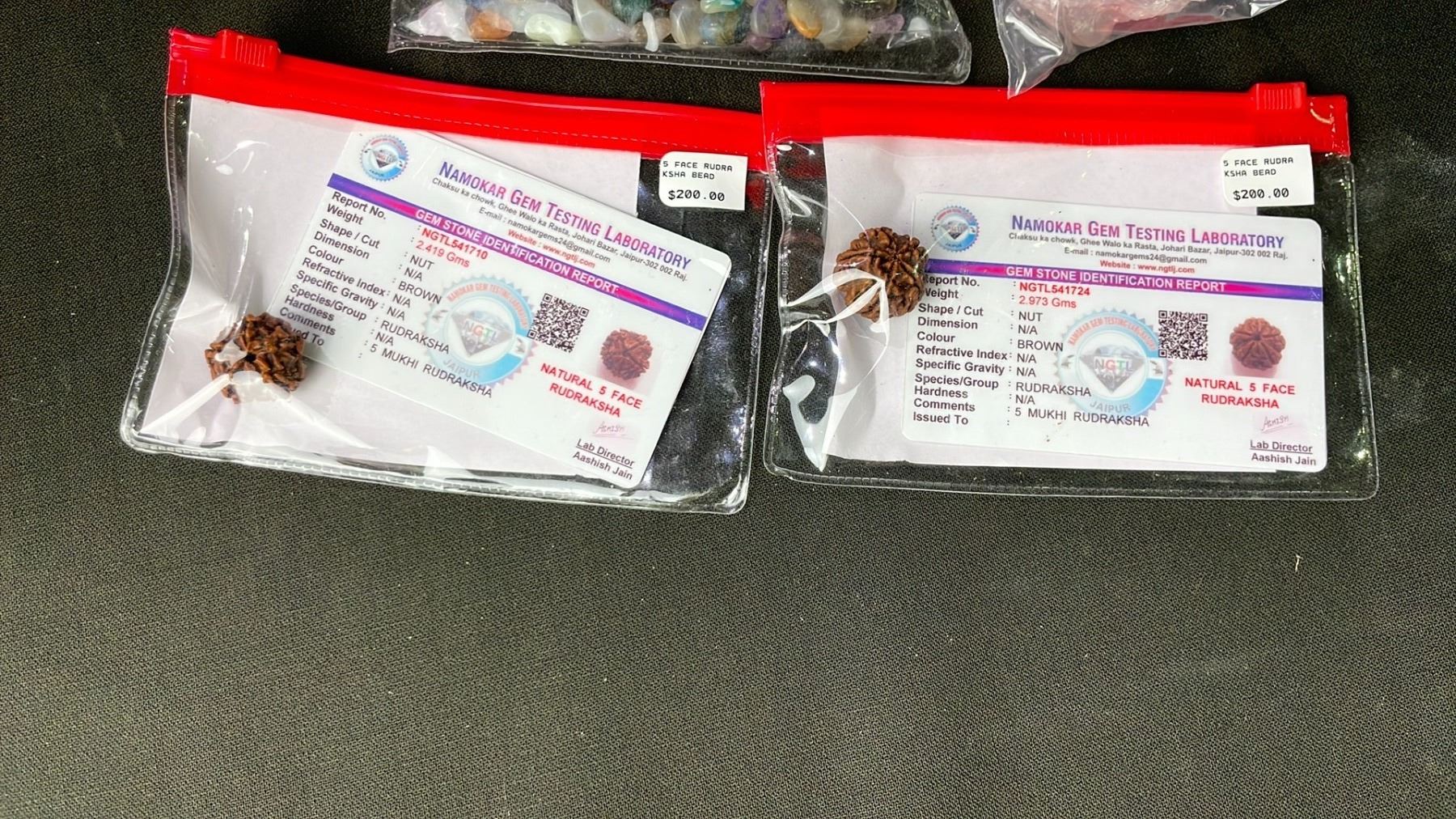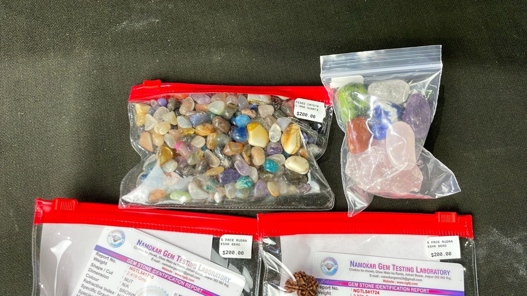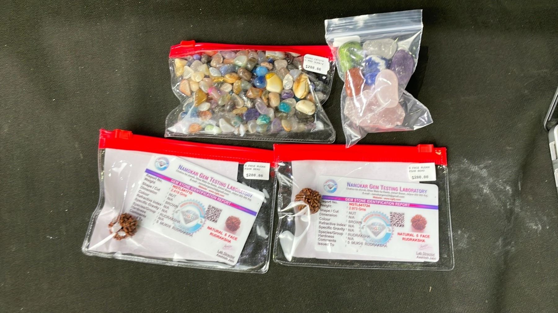 2 BAGS OF MIXED STONES AND 2 FACE RUDRAKSHA BEADS