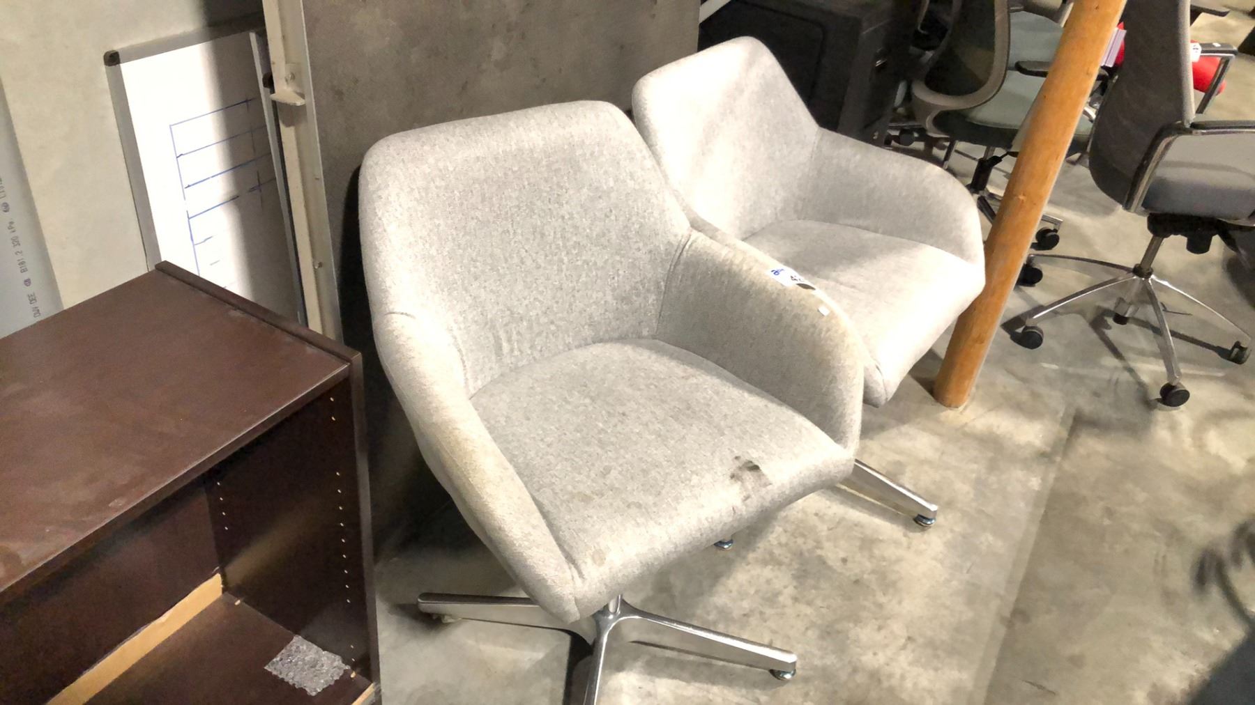 2 BEIGE METAL SWIVEL ARM CHAIRS