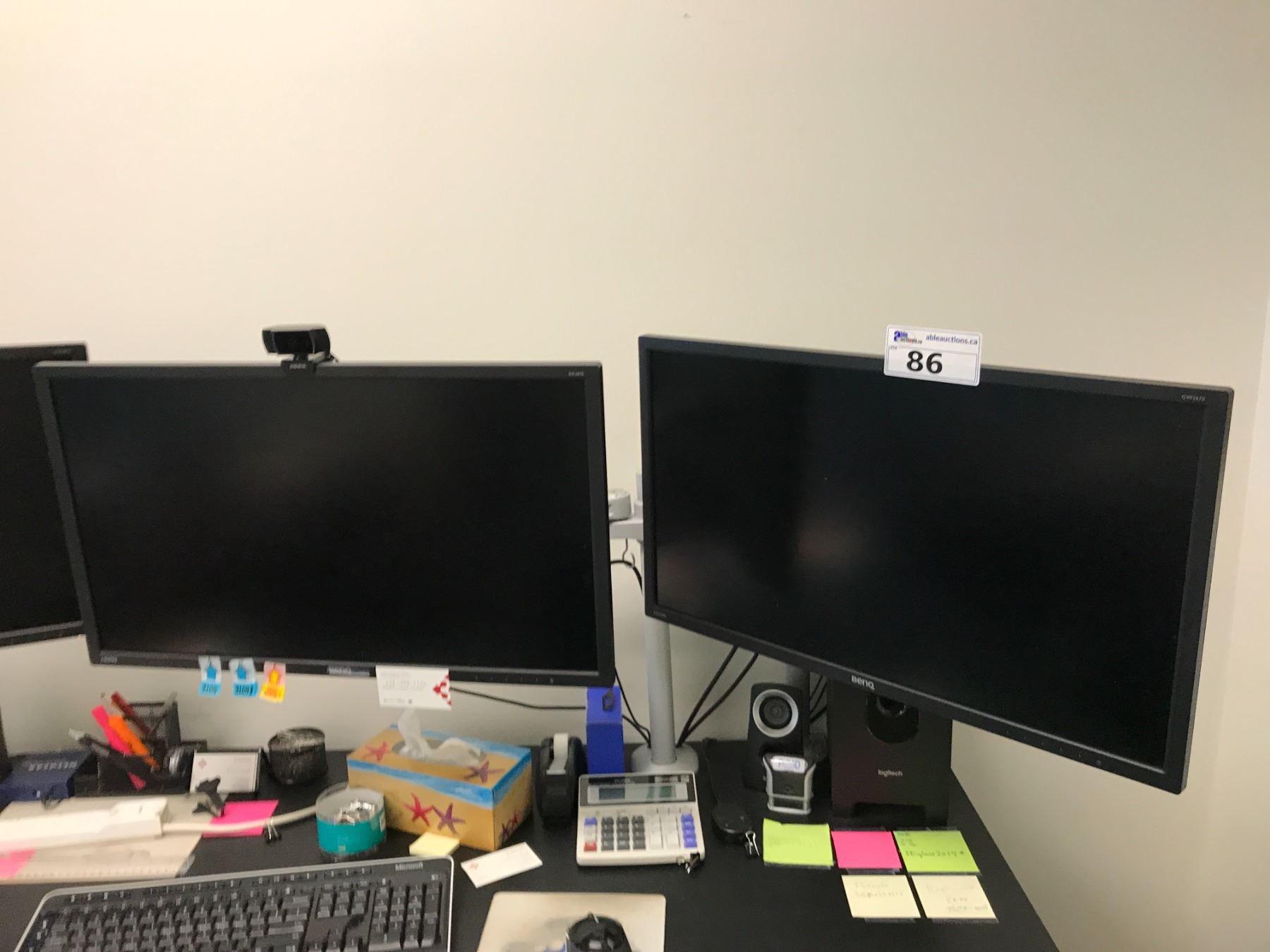 2 BENQ 28" LCD MONITORS AND DUAL MONITOR STAND