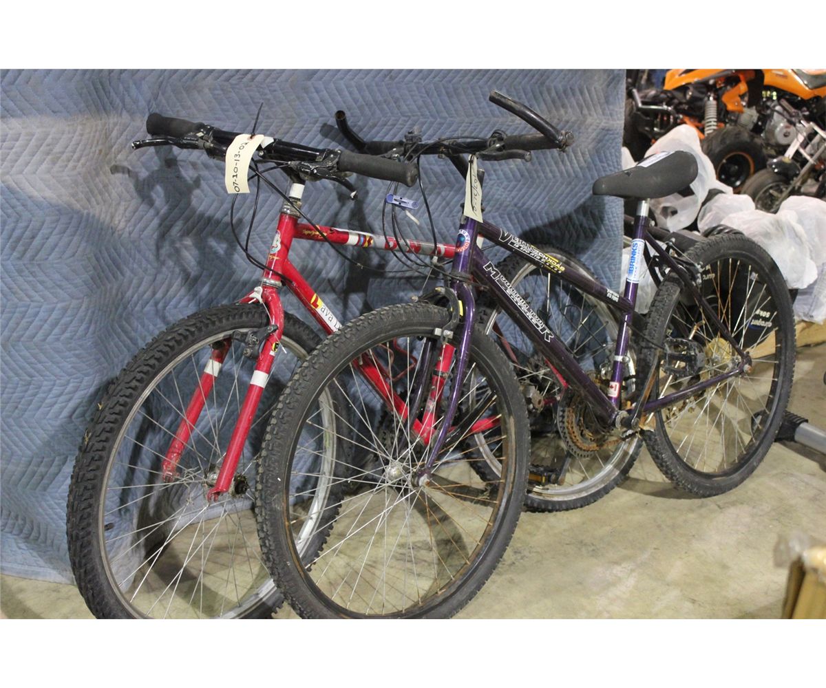 2 BIKE : RED KONA 21 SPD MOUNTAIN BIKE AND PURPLE MOUNTAIN TOUR 18 SPD MOUNTAIN BIKE