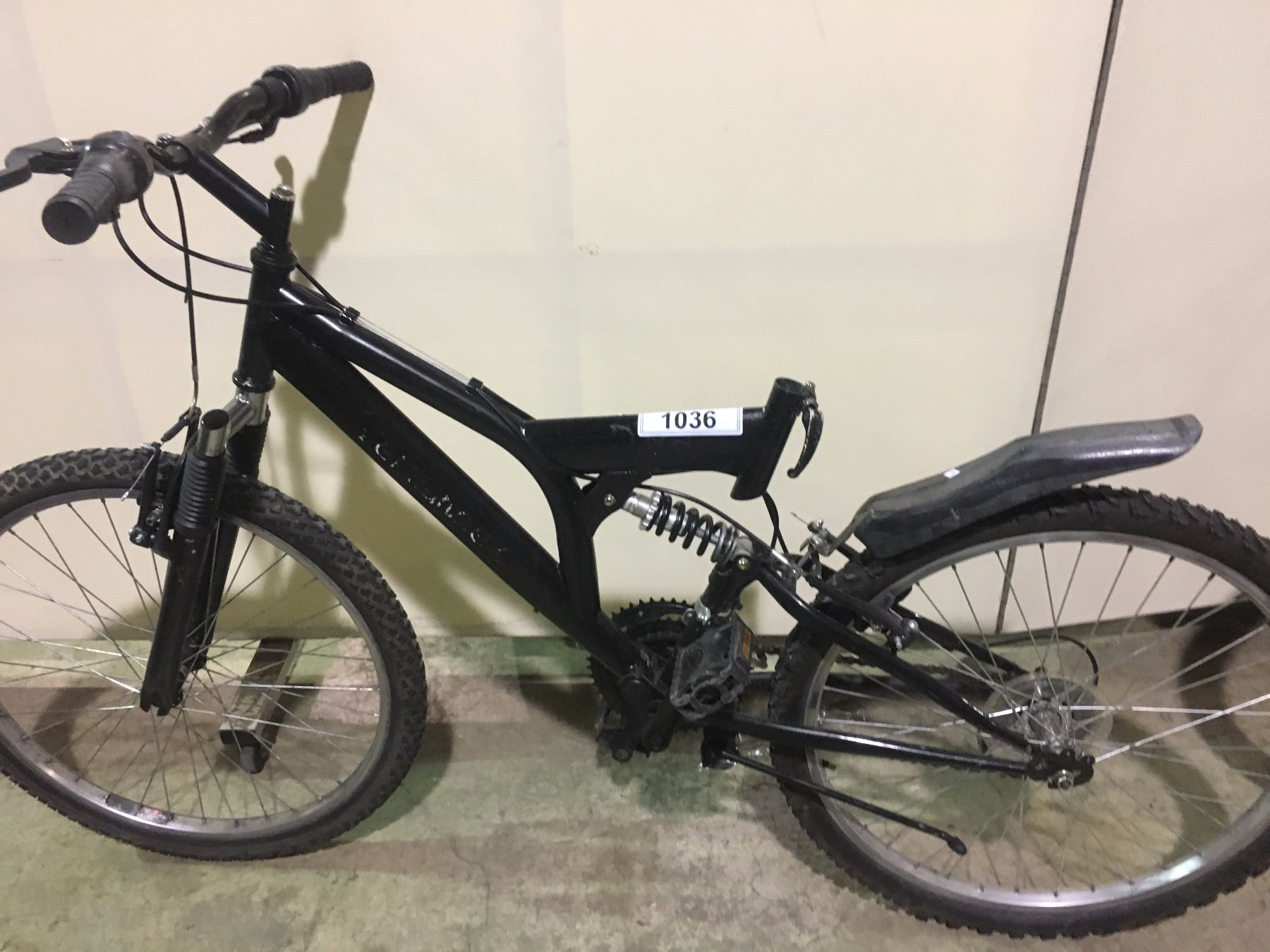 2 BIKES: BLACK NO NAME MOUNTAIN BIKE & GREY HUFFY MOUNTAIN BIKE