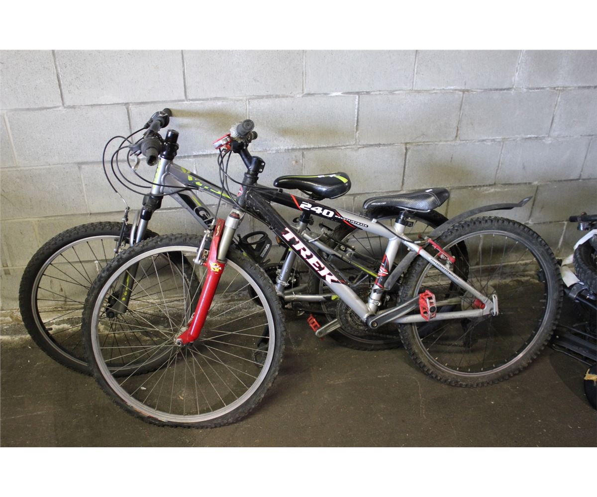 2 BIKES, BLACK TREK FRONT AND SILVER GIANT FRONT SUSP MOUNTAIN BIKE