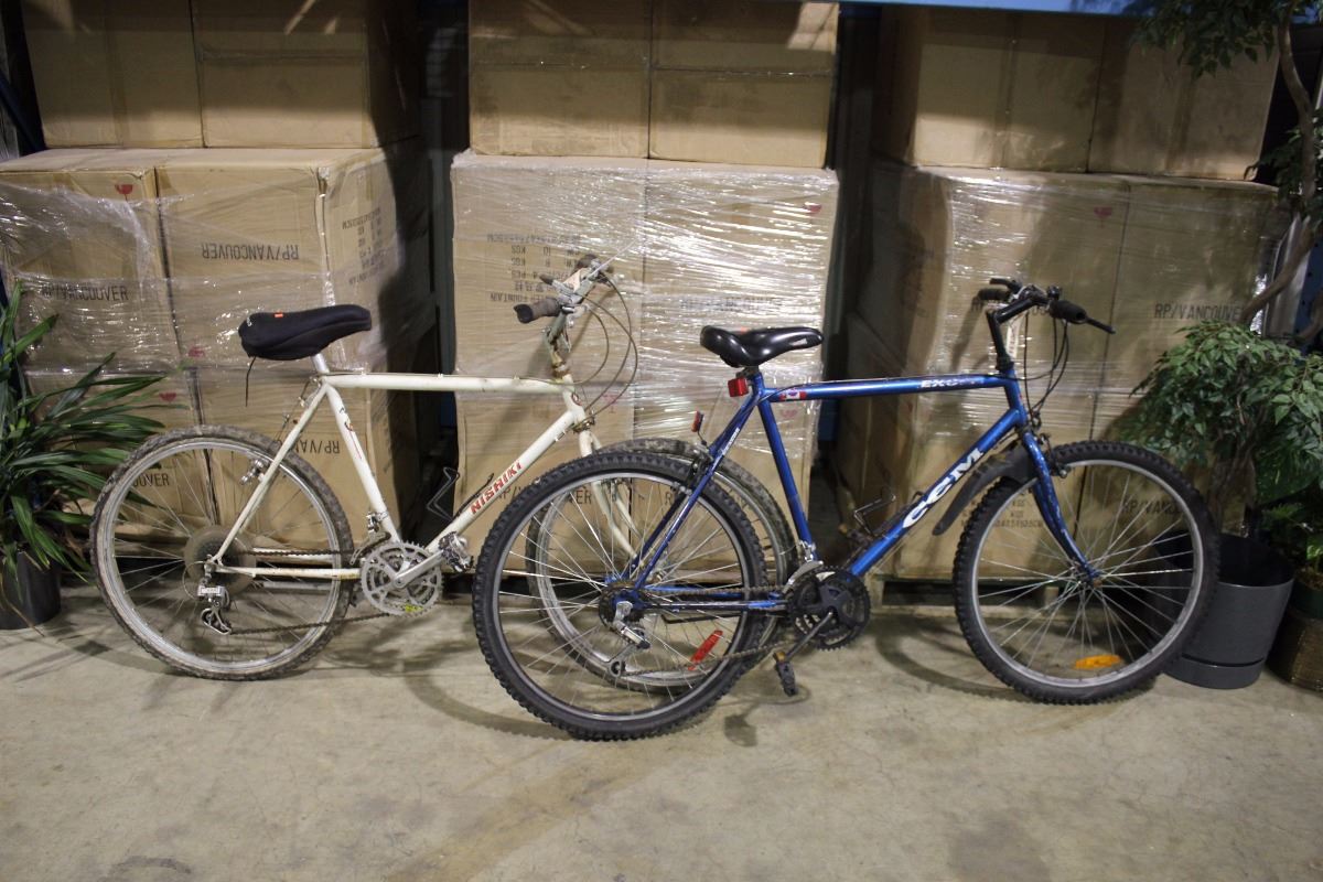 2 BIKES: BLUE CCM MOUNTAIN BIKE & WHITE NISHIKI MOUNTAIN BIKE