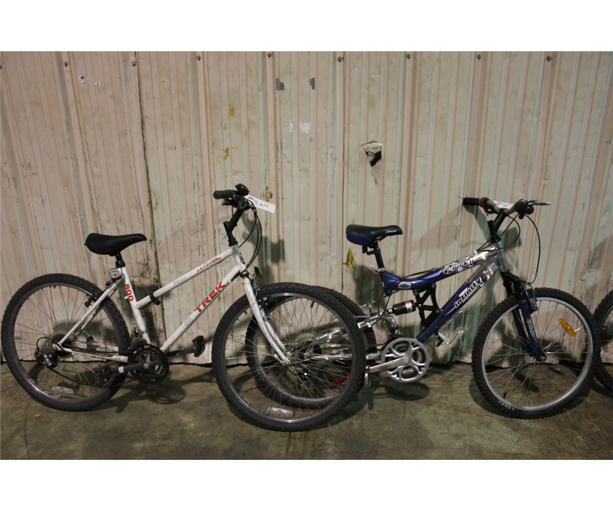 2 BIKES: BLUE INFINITY FULL SUSPENSION MOUNTAIN BIKE & WHITE TREK MOUNTAIN BIKE