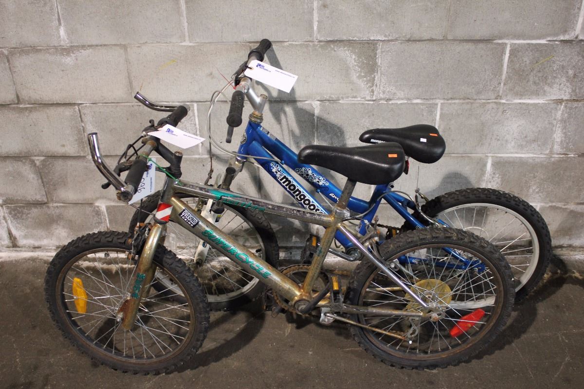 2 BIKES: BLUE MONGOOSE FRONT SUSPENSION & SILVER SUPERCYCLE MOUNTAIN BIKE