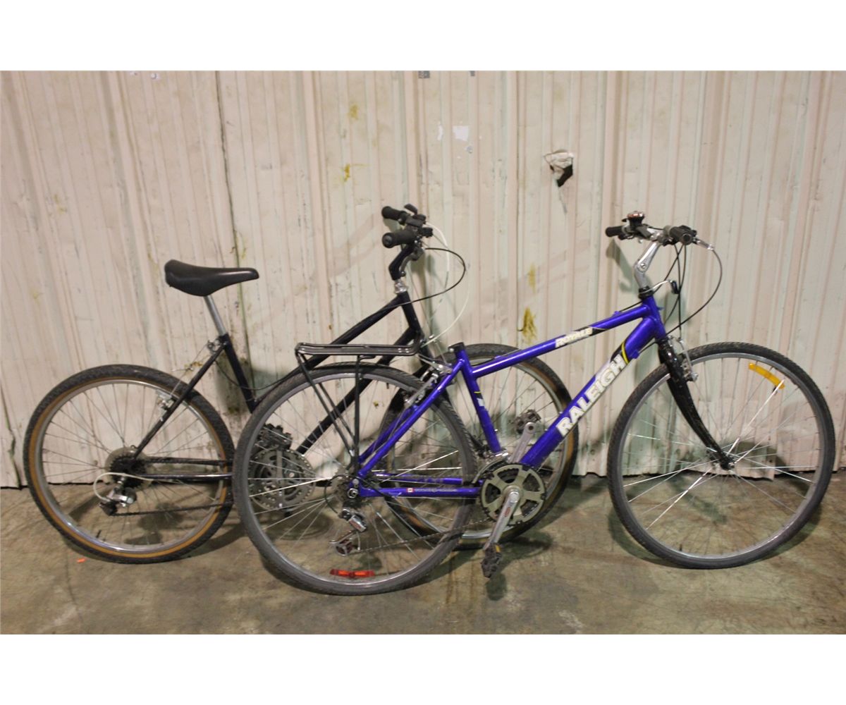 2 BIKES: BLUE RALEIGHT MOUNTAIN & BLACK NO NAME MOUNTAIN BIKE