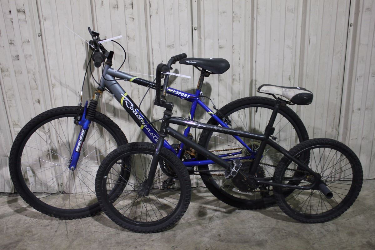 2 BIKES: BLUE ROADMASTER 18 SPEED FRONT SUSPENSION MOUNTAIN BIKE & BLACK NO NAME SINGLE SPEED BMX BIKE