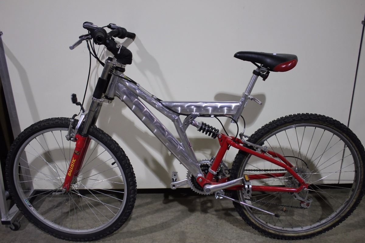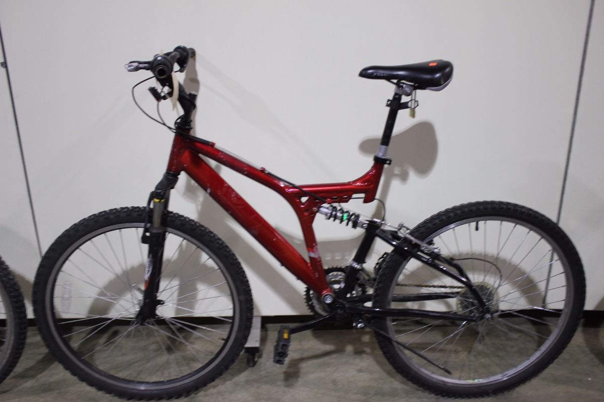 2 BIKES: CHROME FULL SUSPENSION & RED FULL SUSPENSION MOUNTAIN BIKE