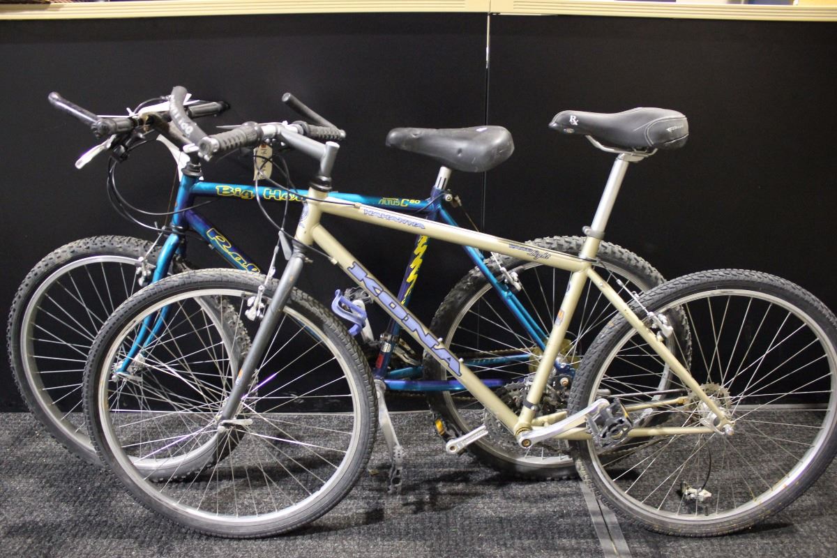 2 BIKES: GOLD KONA 21 SPEED MOUNTAIN BIKE & GREEN RALEIGH 18 SPEED MOUNTAIN BIKE