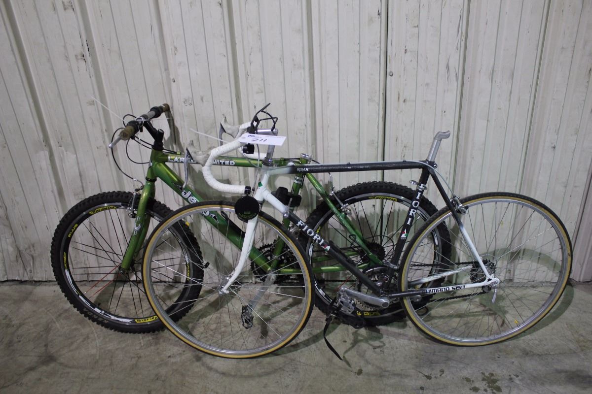 2 BIKES: GREEN JEEP 21 SPEED MOUNTAIN BIKE & BLACK FIORI 12 SPEED ROAD BIKE