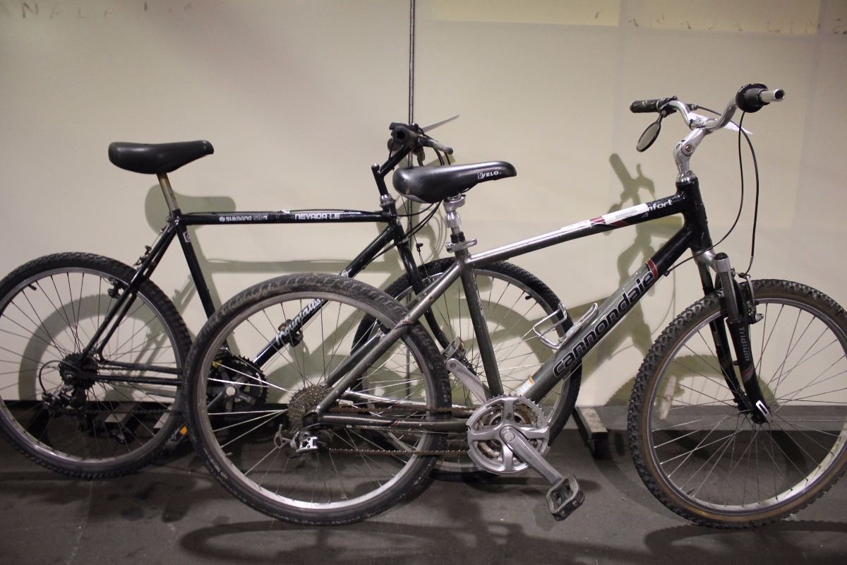 2 BIKES: GREY CANNONDALE FRONT SUSPENSION MOUNTAIN BIKE & BLACK NEVADA MOUNTAIN BIKE