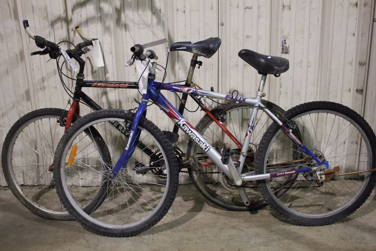 2 BIKES: GREY KAWASAKI 18 SPEED MOUNTAIN BIKE & BLACK KUWAHARA 21 SPEED MOUNTAIN BIKE