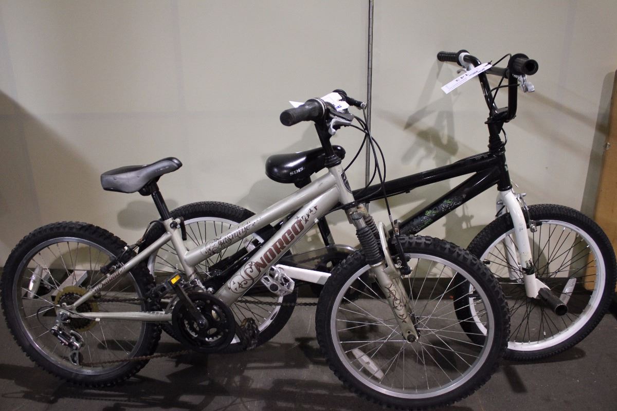 2 BIKES: GREY KIDS NORCO FRONT SUSPENSION MOUNTAIN BIKE & BLACK BMX BIKE