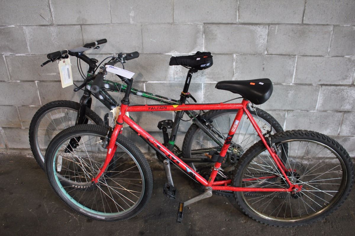 2 BIKES: GREY NO NAME MOUNTAIN BIKE & RED CCM HYBRID BIKE