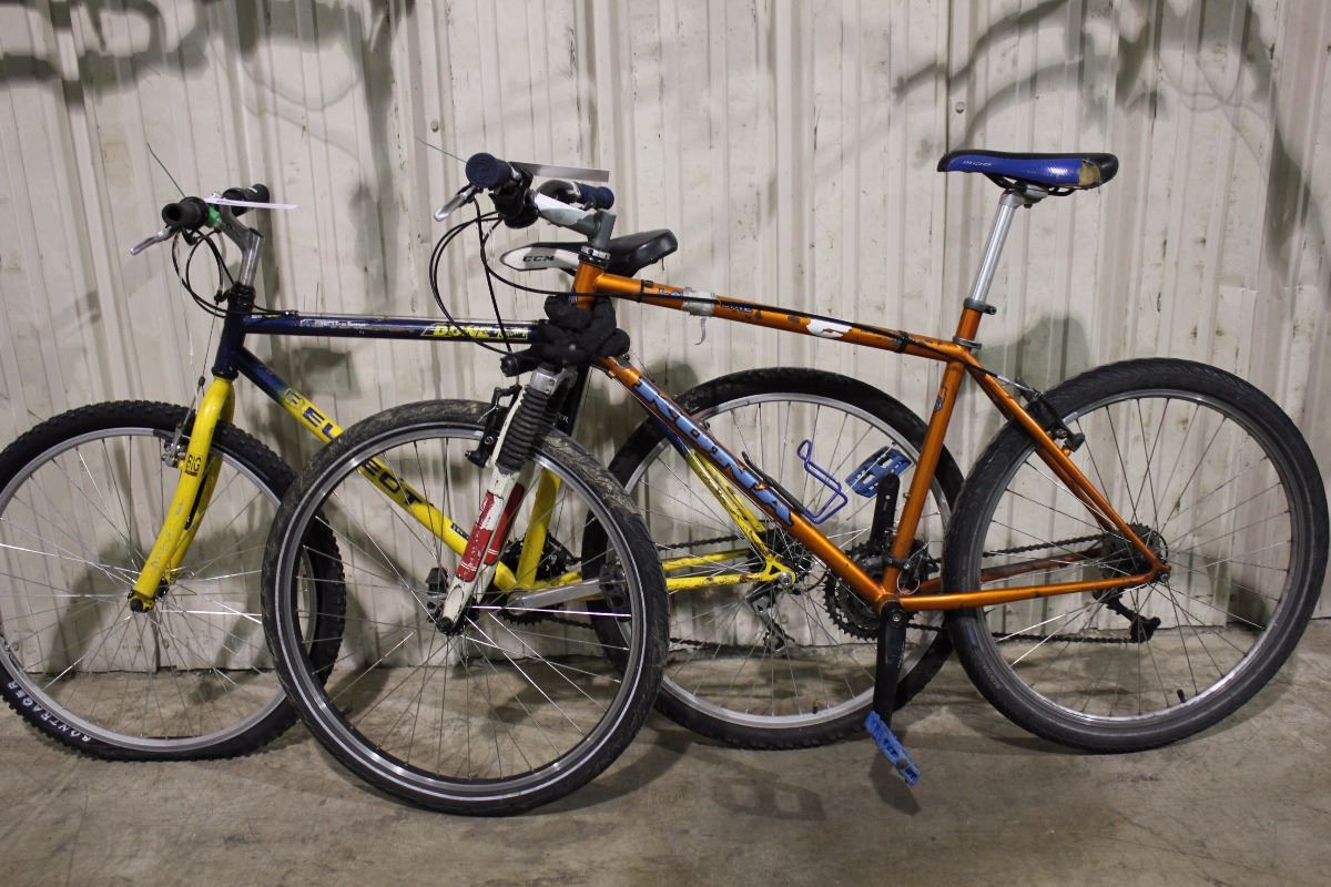 2 BIKES: ORANGE KONA 21 SPEED FRONT SUSPENSION MOUNTAIN BIKE & YELLOW PEUGEOT 21 SPEED MOUNTAIN BIKE