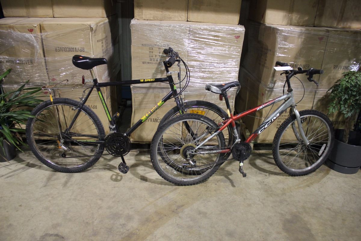 2 BIKES: RED CCM MOUNTAIN BIKE & BLACK CONDOR HYBRID BIKE