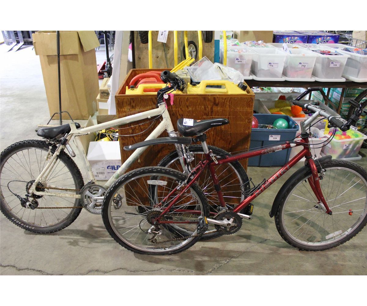 2 BIKES: RED NISHIKI MOUNTAIN BIKE & WHITE NO NAME FRONT SUSPENSION MOUNTAIN BIKE