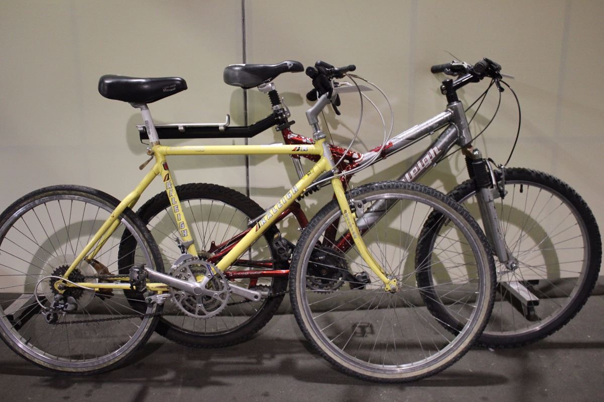 2 BIKES: RED RALEIGH FULL SUSPENSION MOUNTAIN BIKE &YELLOW RALEIGH MOUNTAIN BIKE