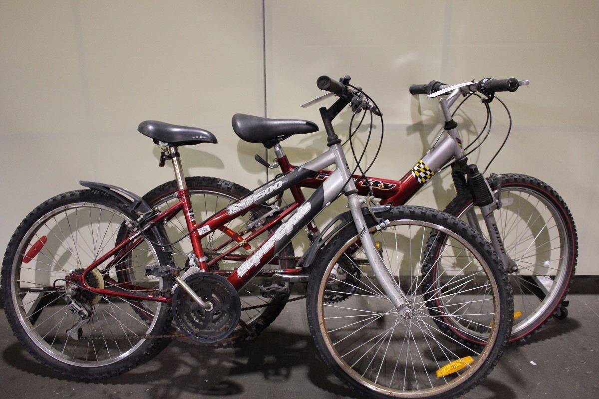 2 BIKES: RED SUPERCYCLE SC1500 MOUNTAIN BIKE & RED INFINITY FRONT SUSPENSION MOUNTAIN BIKE