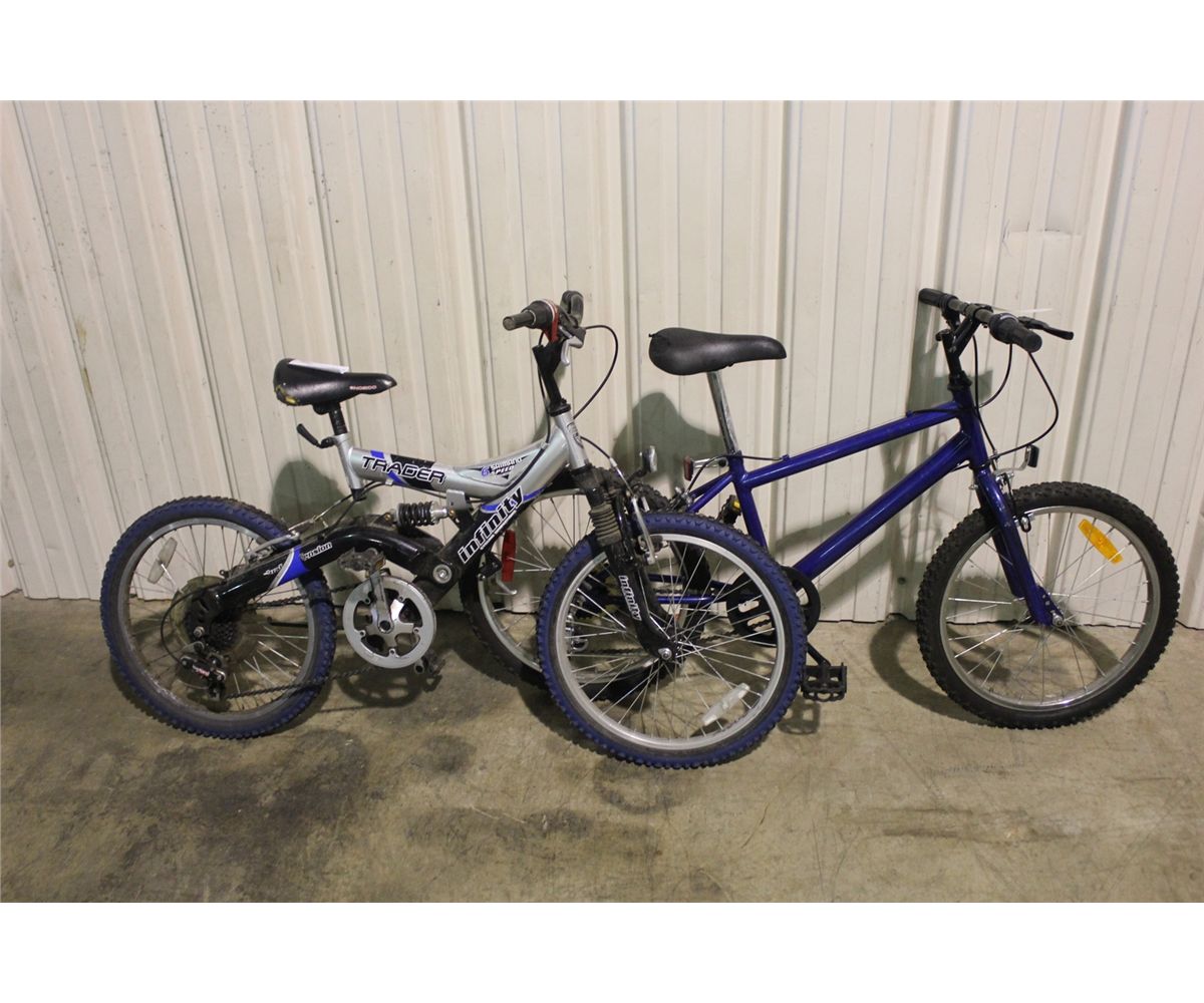 2 BIKES: SILVER INFINITY FULL SUSPENSION MOUNTAIN BIKE & BLUE NO NAME KIDS BIKE