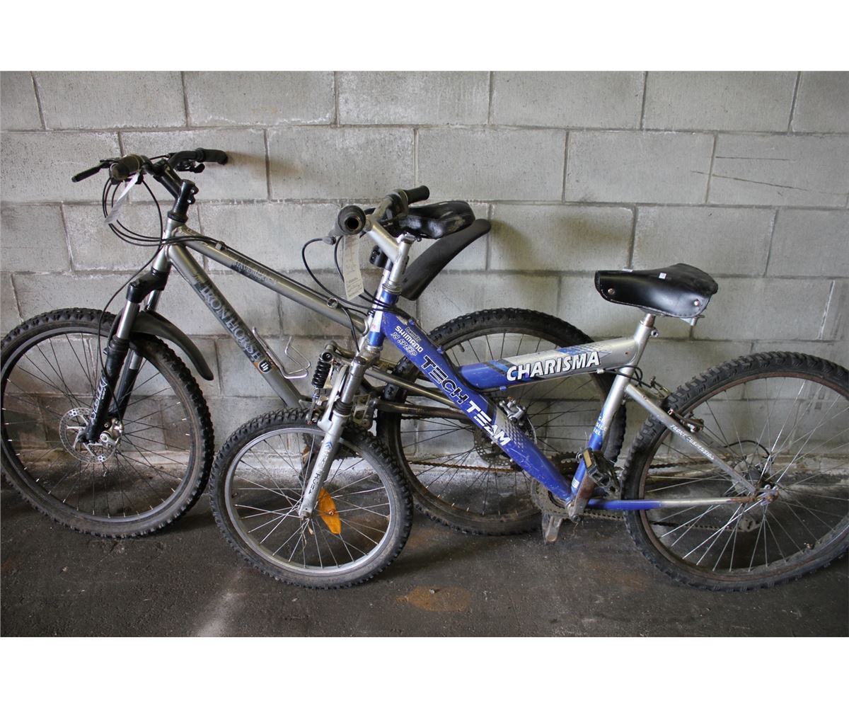 2 BIKES: SILVER IRONHORSE FULL SUSPENSION & BLUE INFINITY FRONT SUSPENSION MOUNTAIN BIKE