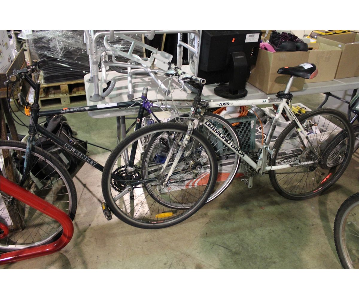 2 BIKES: WHITE DIAMONDBACK MOUNTAIN BIKE & GREEN MCKINLEY MOUNTAIN BIKE