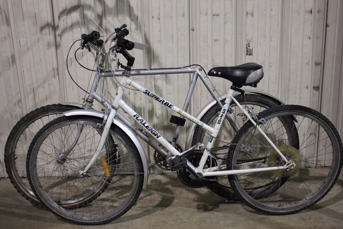 2 BIKES: WHITE RALEIGH 12 SPEED MOUNTAIN BIKE & GREY SPECIALIZED STUMP JUMPER 18 SPEED MOUNTAIN BIKE