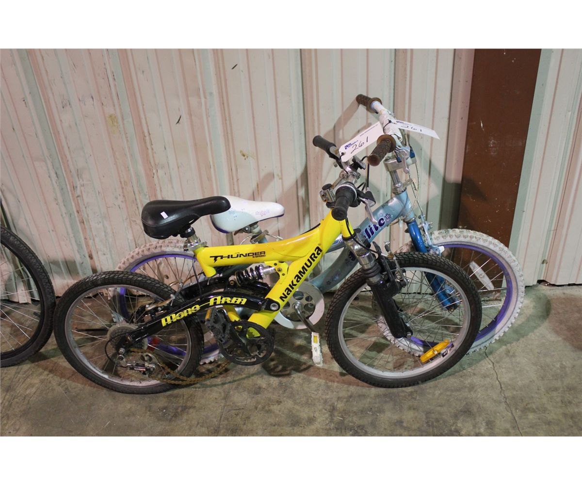 2 BIKES: YELLOW NAKAMURA FULL SUSPENSION & SILVER 'DEELITE' KIDS BIKES