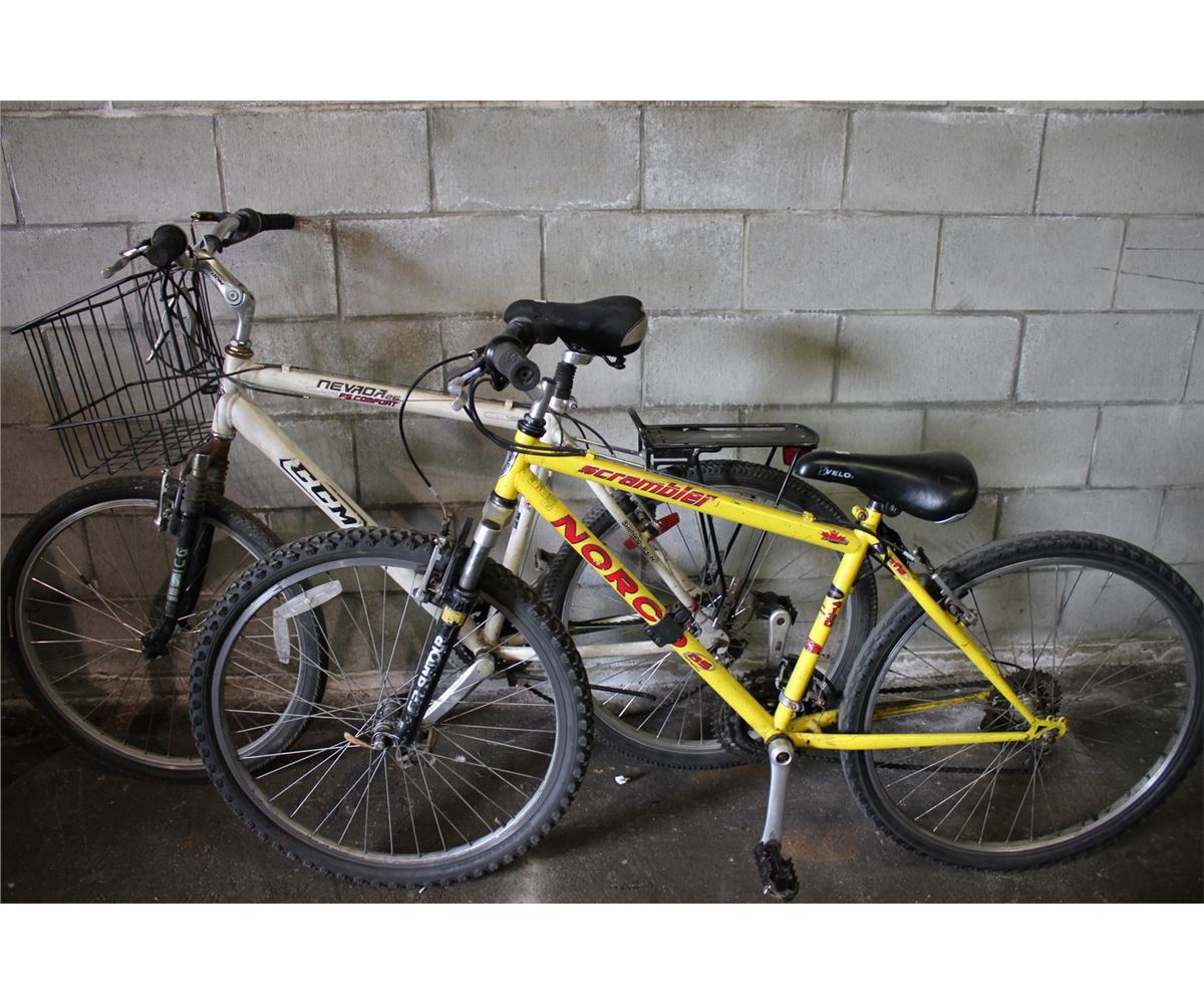 2 BIKES: YELLOW NORCO FRONT SUSPENSION & WHITE CCM FRONT SUSPENSION MOUNTAIN BIKE