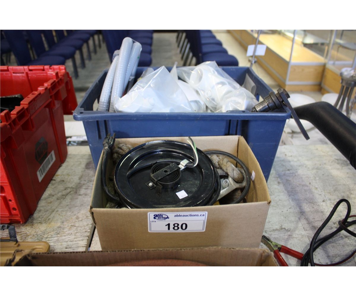 2 BINS OF ASSORTED HARDWARE AND ELECTRICAL WIRE