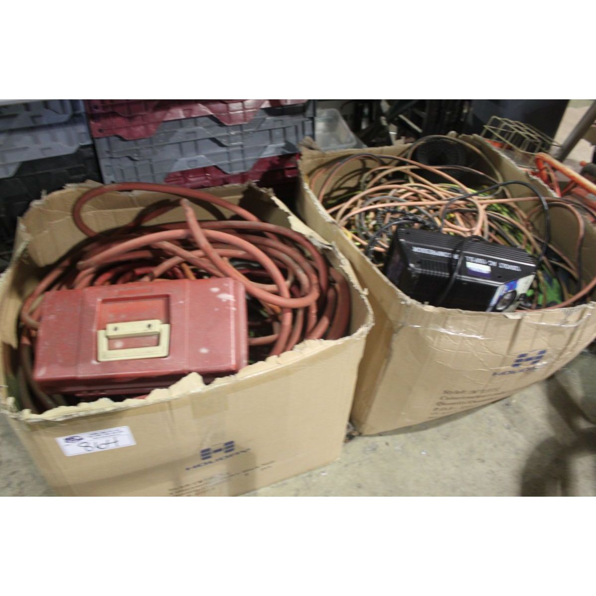 2 BINS OF ASSORTED HOSES & ELECTRICAL CORDS