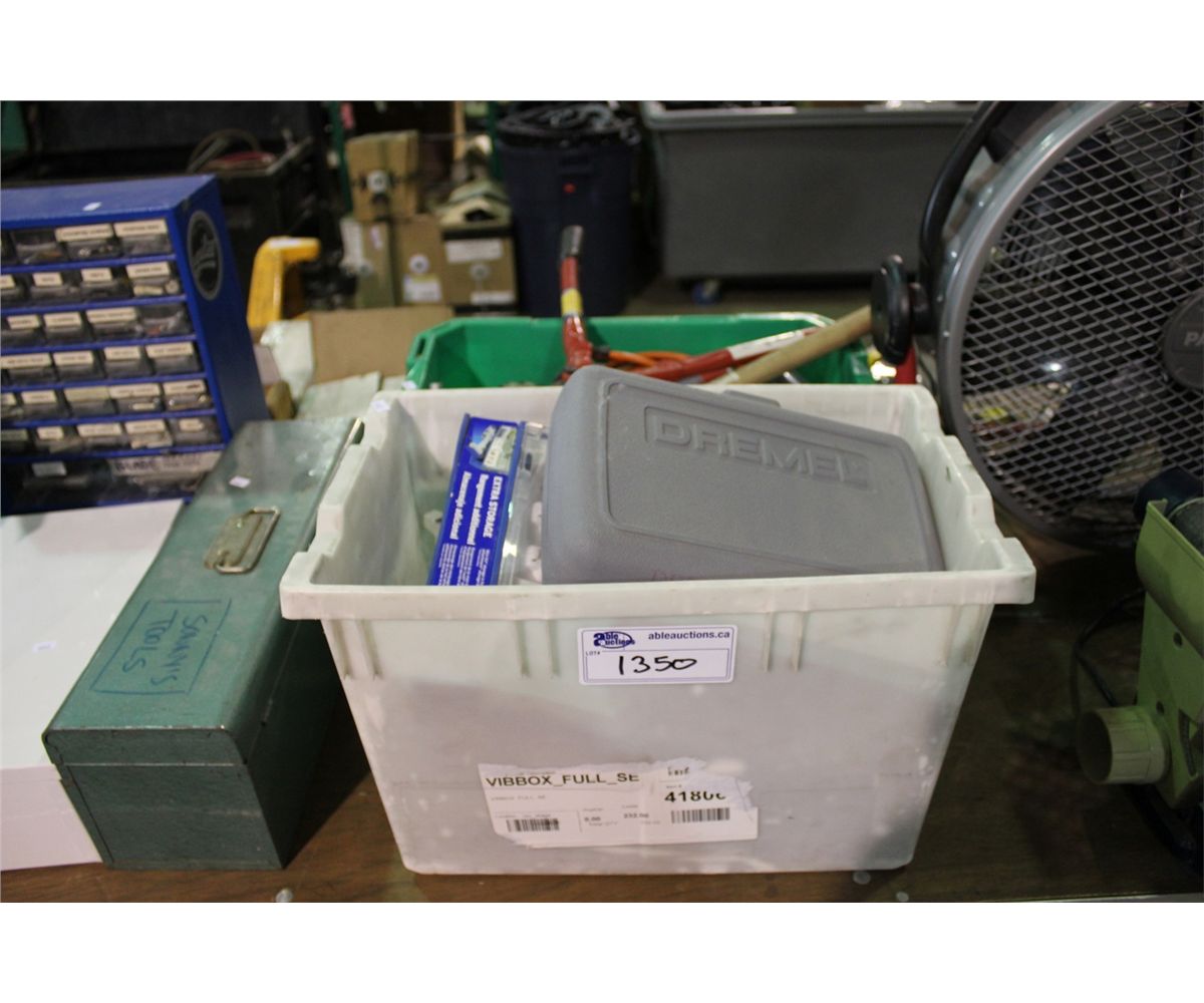 2 BINS OF ASSORTED TOOLS & PATTON FAN
