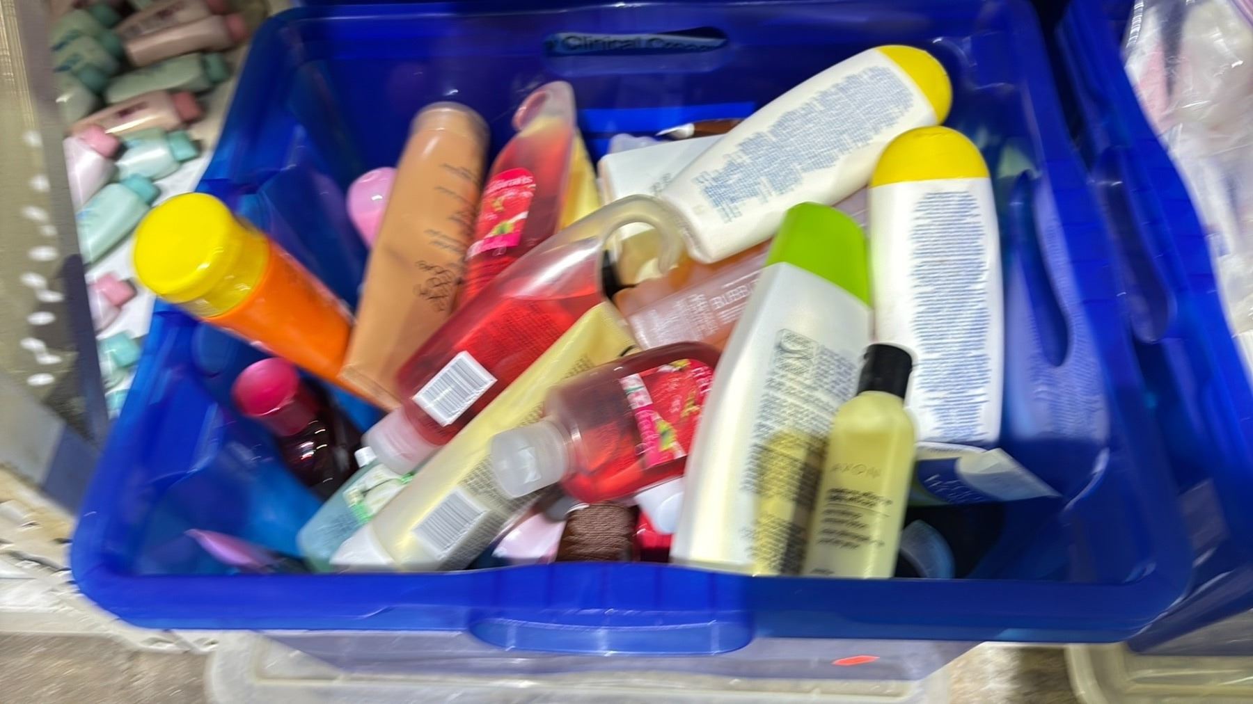 2 BINS OF BUBBLE BATH, SHOWER GEL, SUNSCREEN LOTION, SHAMPOO, ANEW CLINICAL